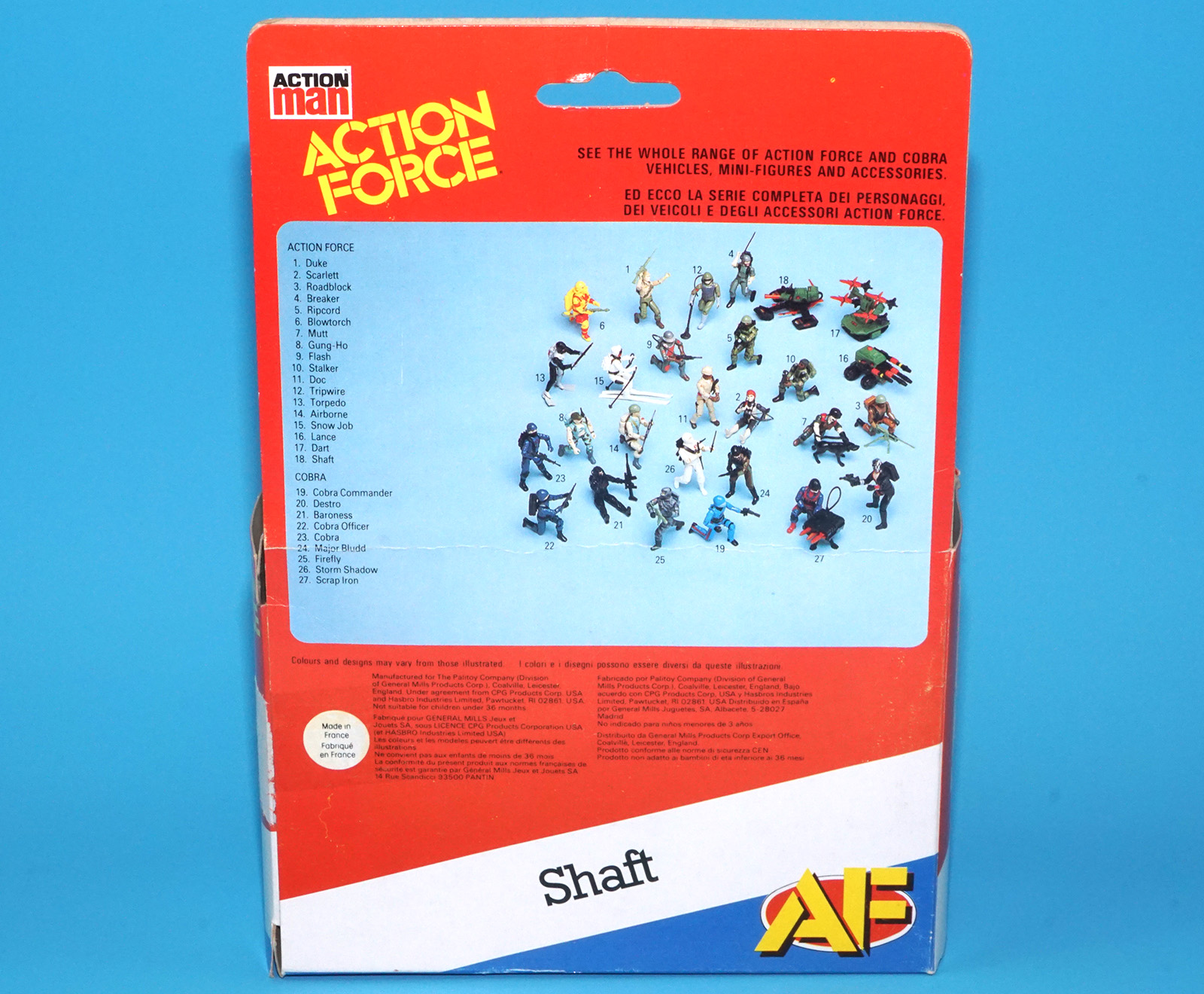 1983 GI JOE ACTION FORCE Z FORCE PAC RAT SHAFT ORIGINAL EMPTY BOX & INSERTS PALITOY