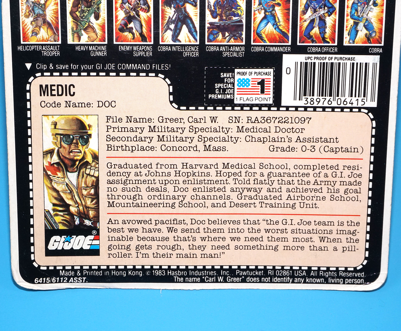1983 GI JOE DOC v1 UNCUT FILE CARD CARDBACK 32-BACK US USA HASBRO