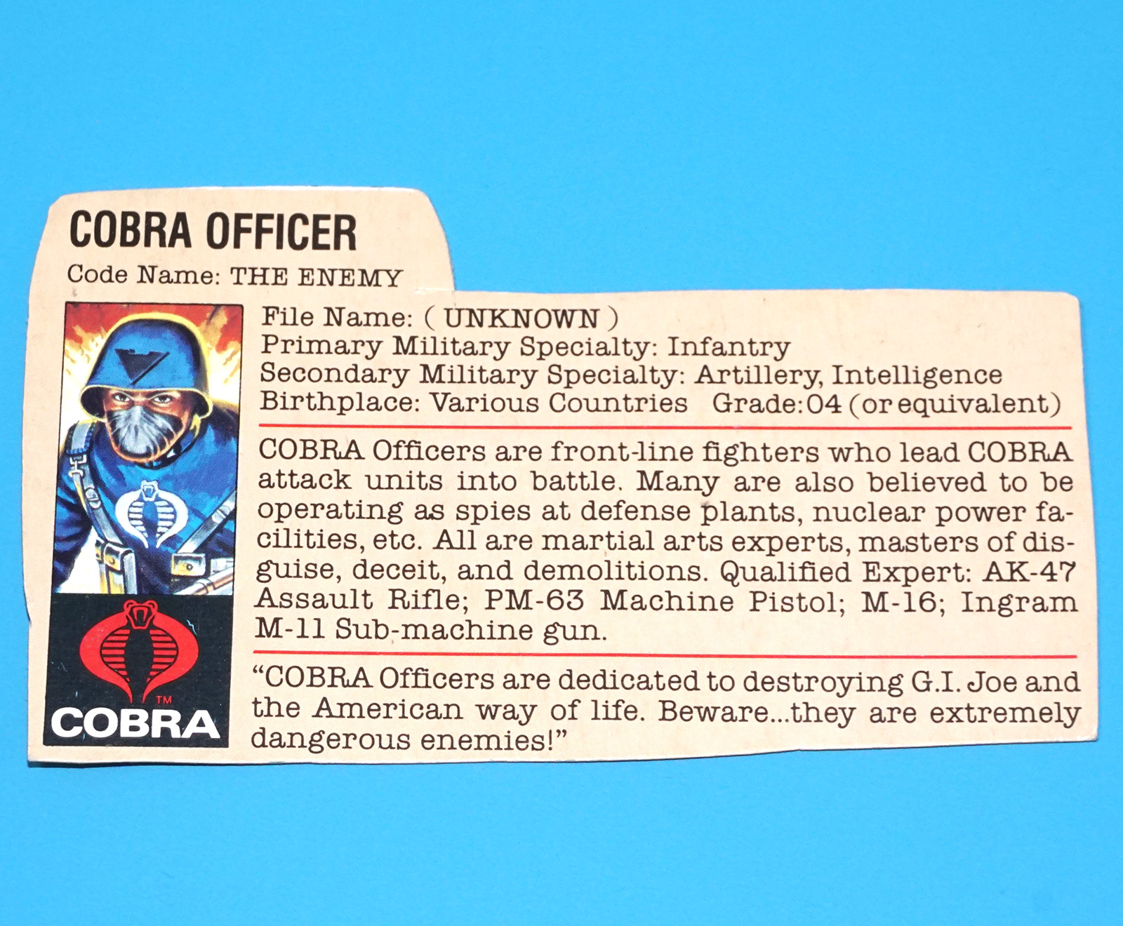 1983 GI JOE SNOW JOB v1 FILE CARD FILECARD FILECARD US USA HASBRO