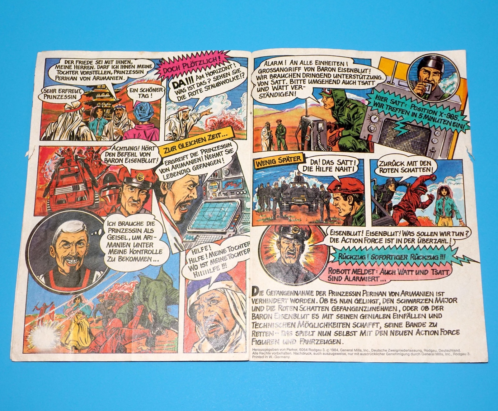 1984 GI JOE ACTION FORCE GERMAN A5 COMIC BOX INSERT BARON EISENBLUT PALITOY PARKER