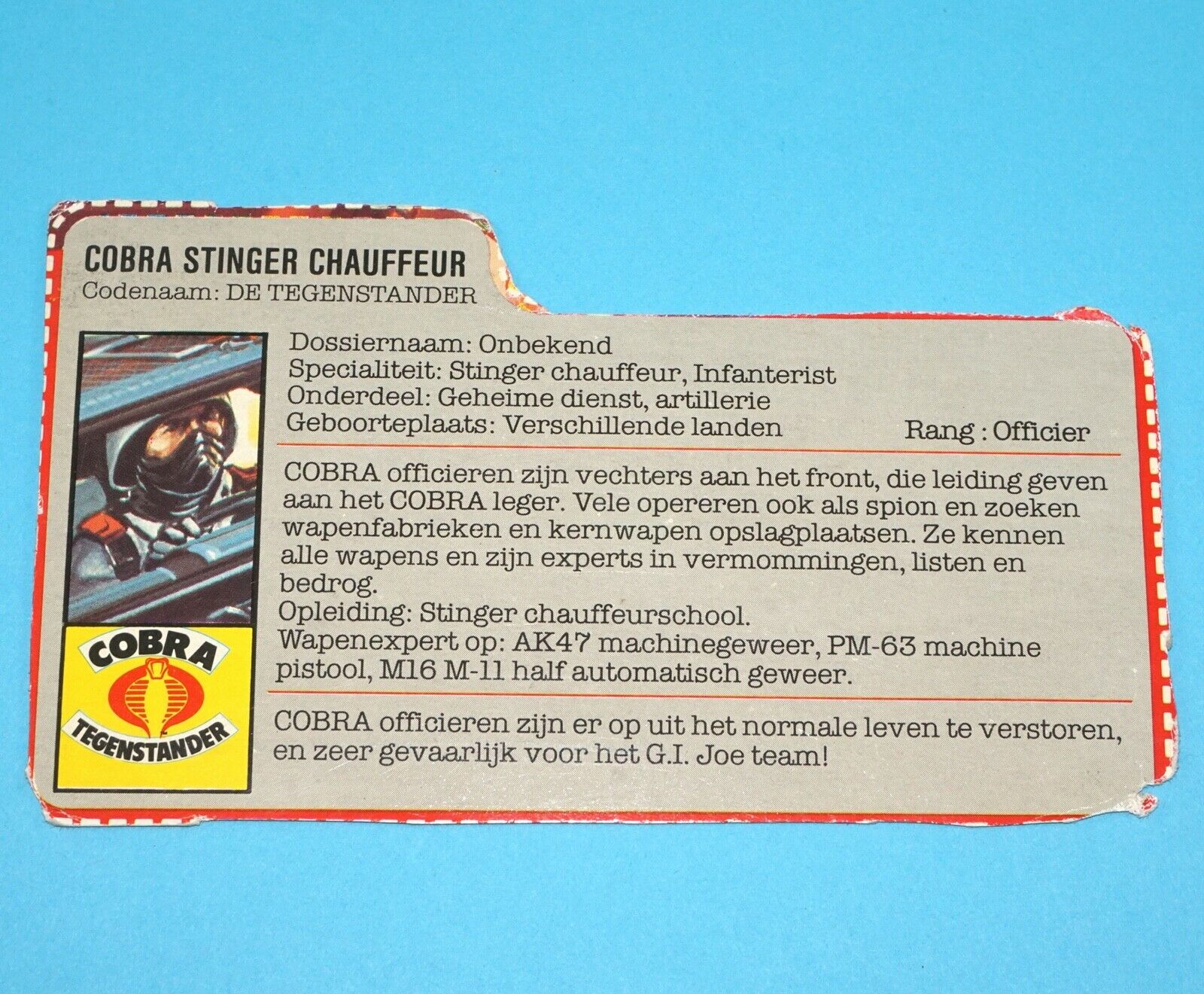 1984 GI JOE STINGER DRIVER v1 FILE CARD FILECARD NL DUTCH HASBRO