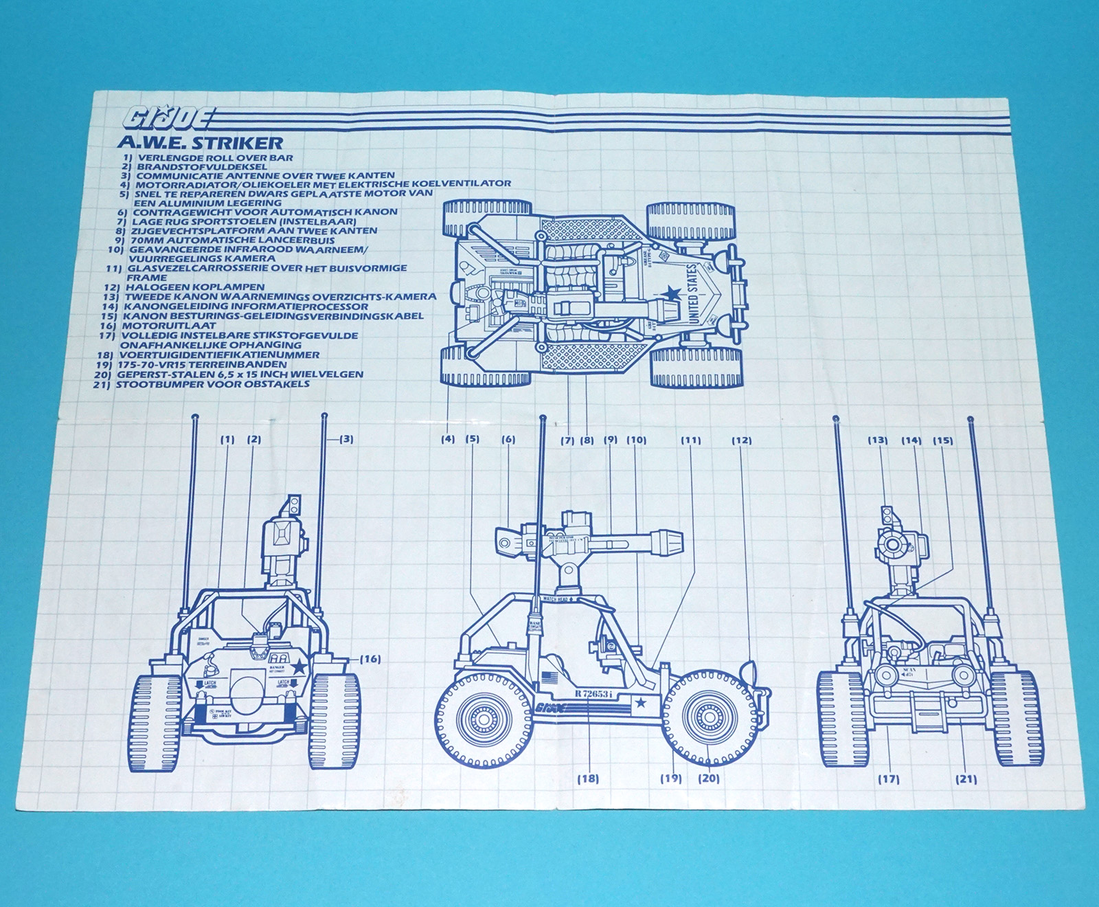 1985 GI JOE A.W.E. STRIKER SPARE BLUEPRINT INSTRUCTIONS NL DUTCH HASBRO