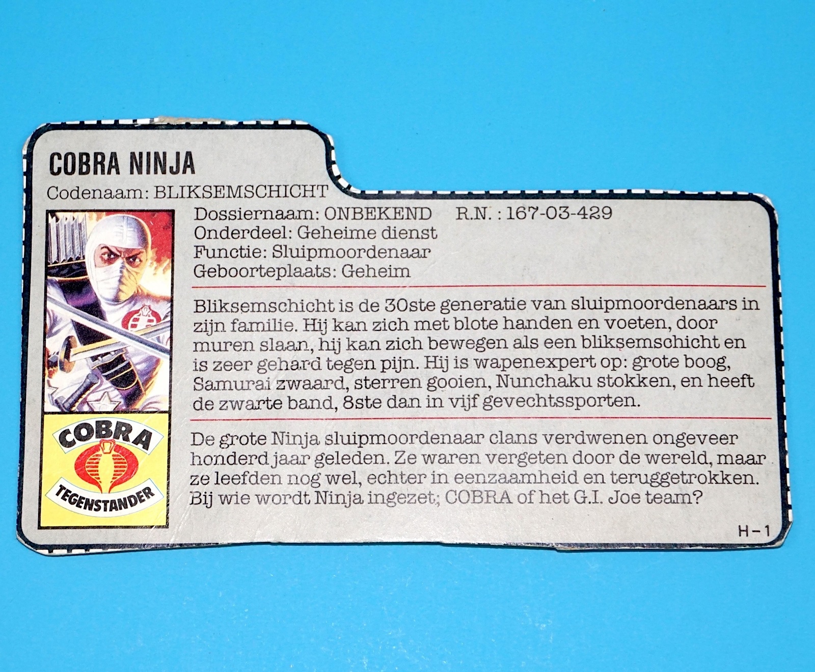 1985 GI JOE AIRTIGHT v1 FILE CARD FILECARD NL DUTCH HASBRO