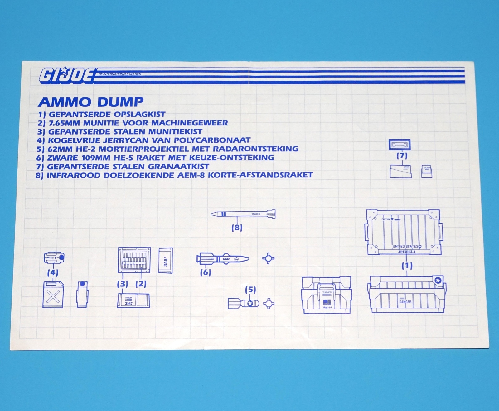 1985 GI JOE AMMO DUMP UNIT SPARE BLUEPRINT INSTRUCTIONS NL DUTCH HASBRO