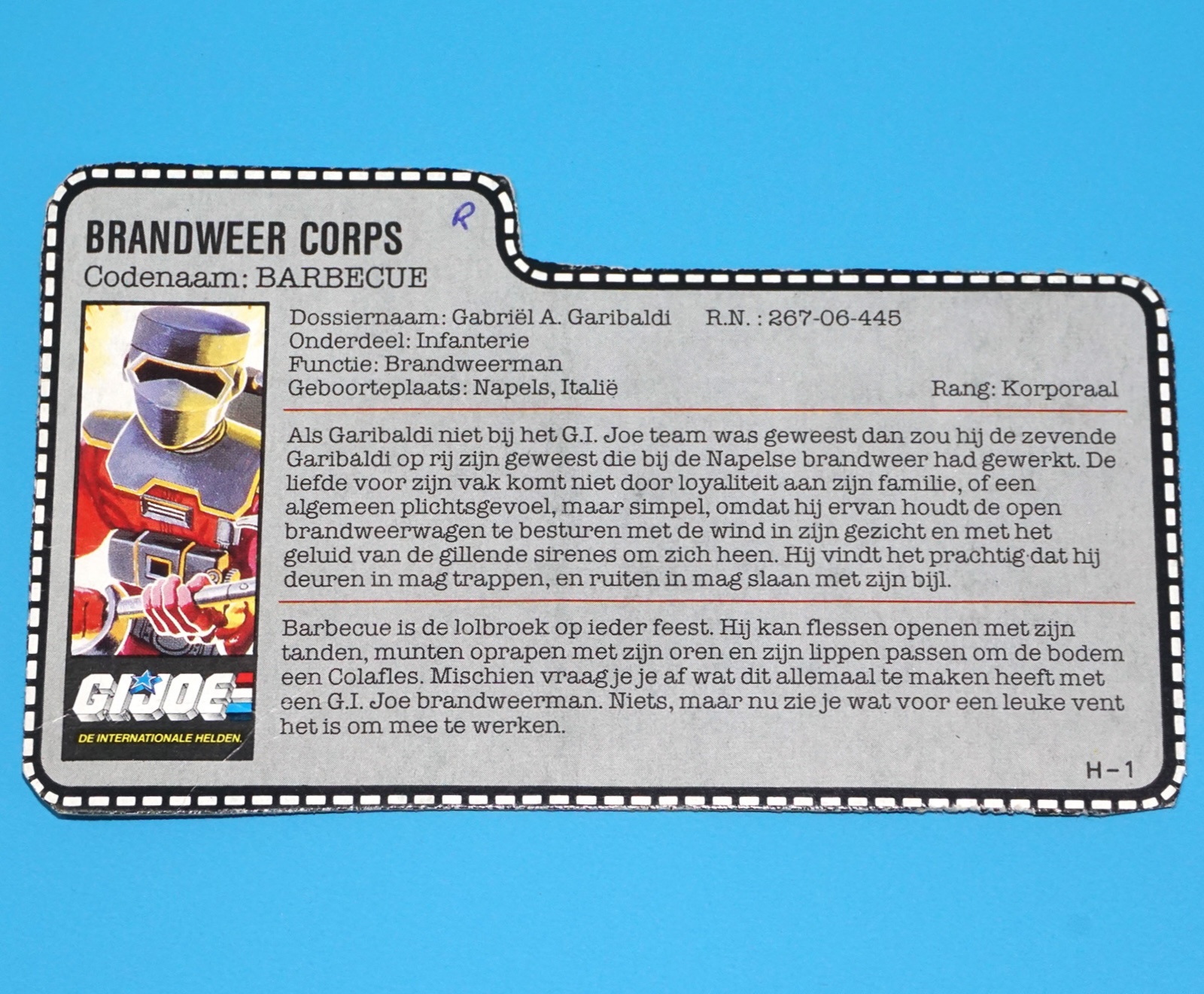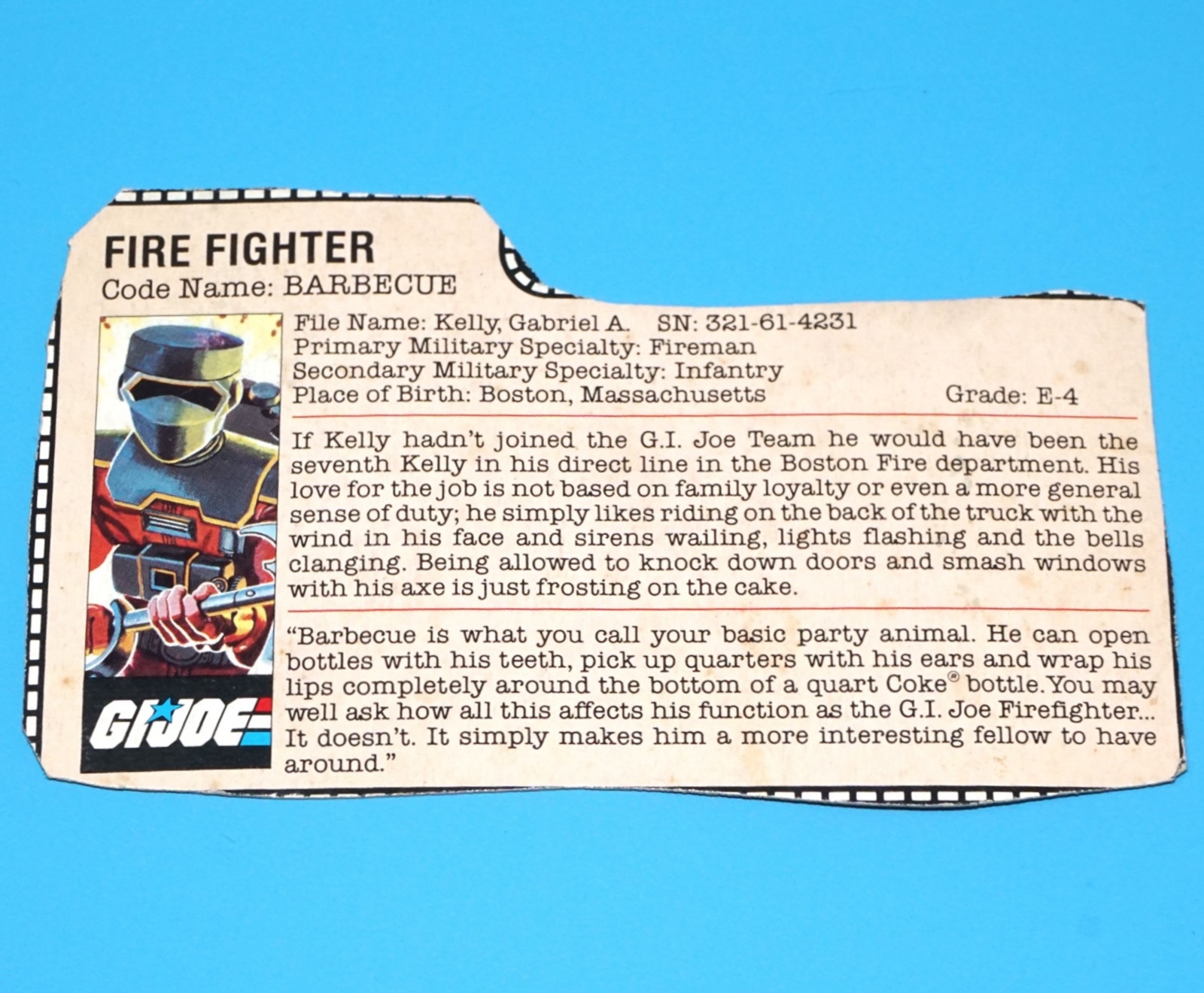 1985 GI JOE BARBECUE v1 FILE CARD FILECARD US USA HASBRO