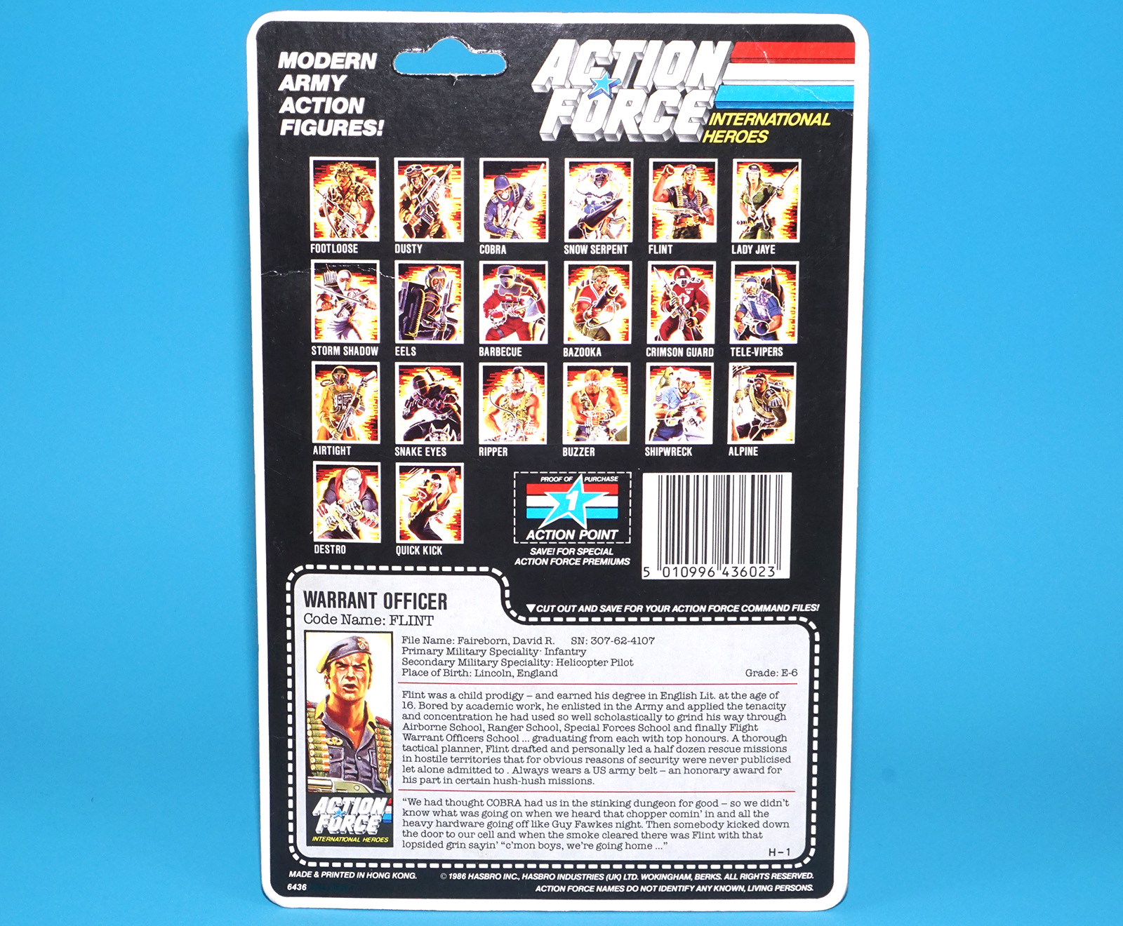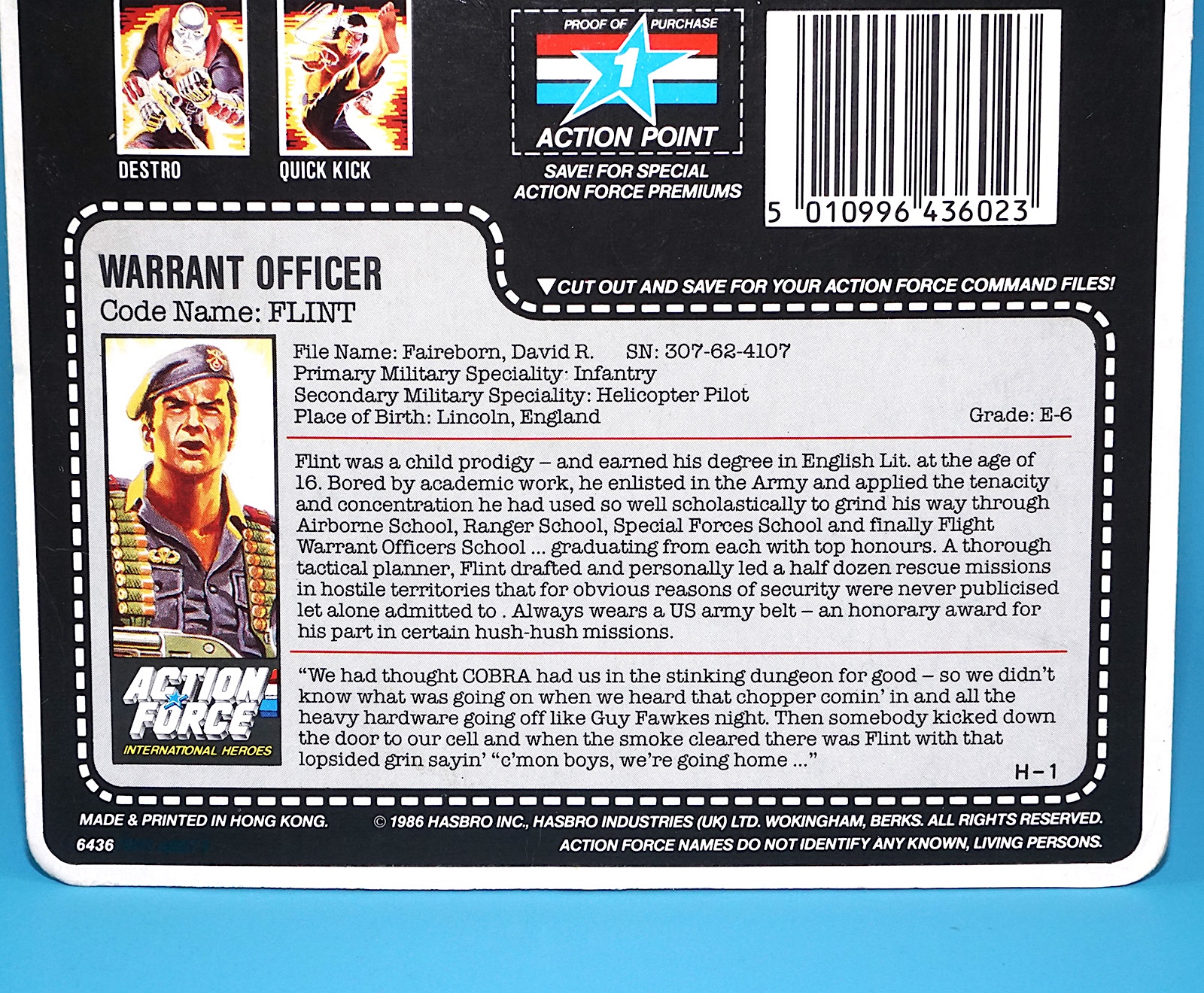 1985 GI JOE FLINT v1 CARDBACK UNCUT FILE CARD ACTION FORCE UK 1986 HASBRO