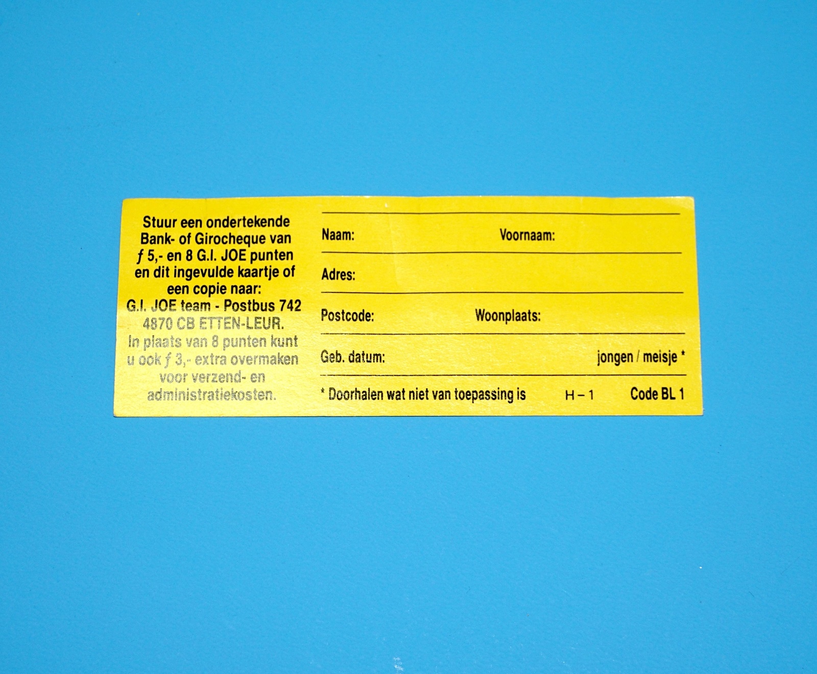 1985 GI JOE LEAFLET FREE HOODED COBRA COMMANDER v2 ORDER FORM NL DUTCH HASBRO HTF