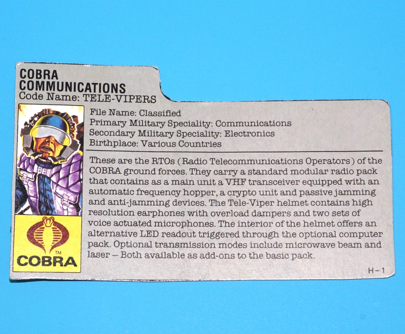 1985 GI JOE TELE-VIPERS v1 FILE CARD FILECARD NL DUTCH HASBRO