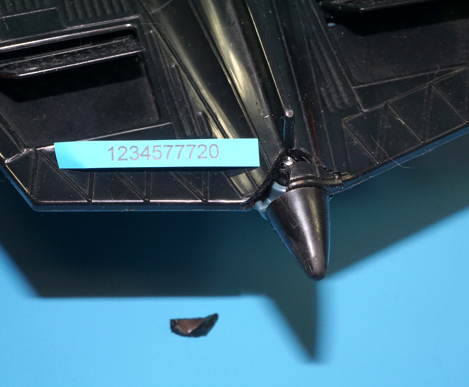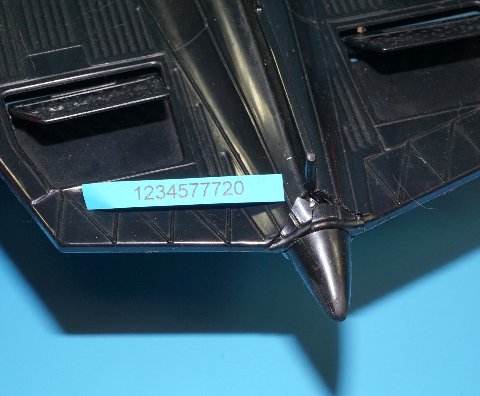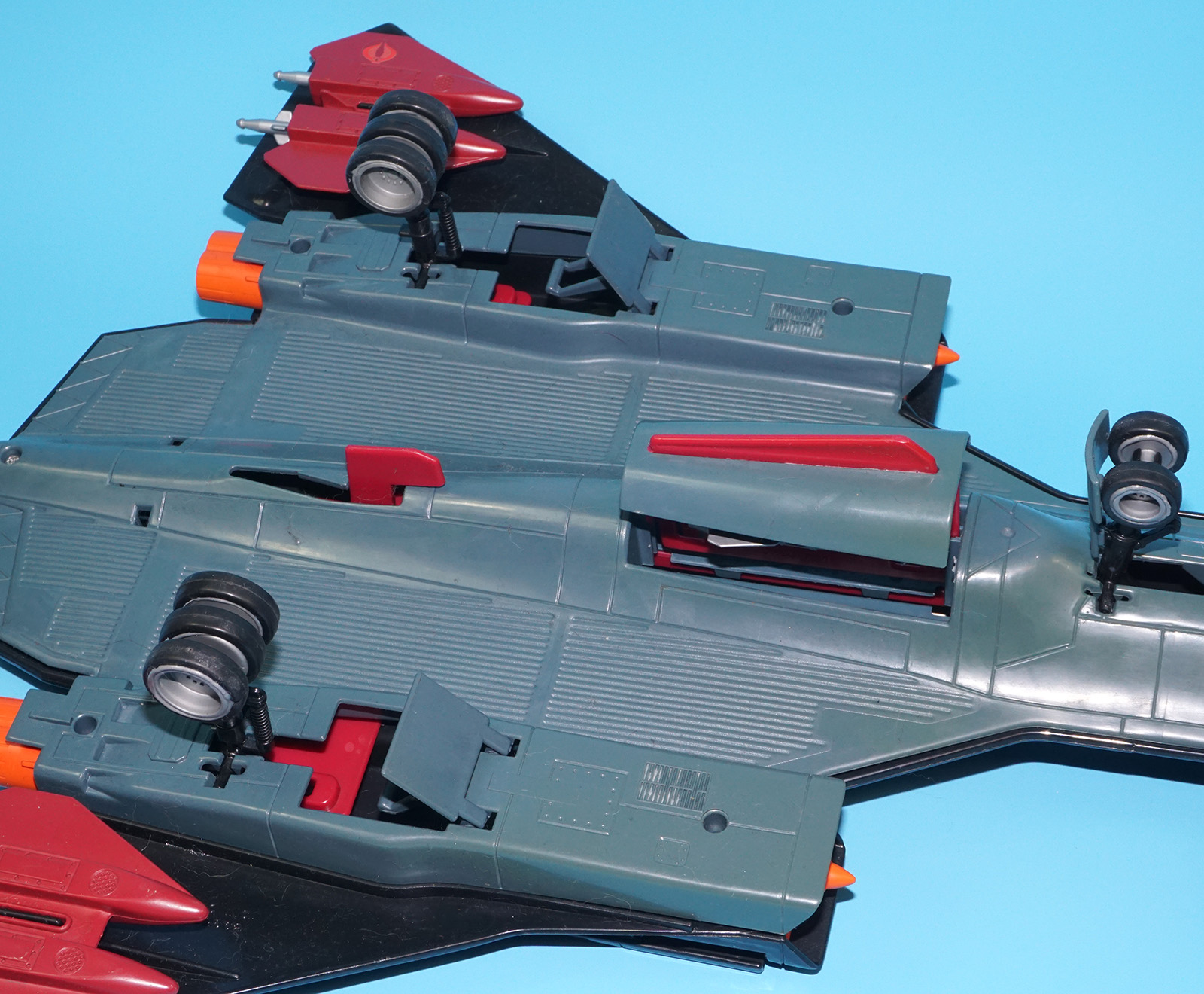 Some discoloration to body (bottom side). Repaired (screw) cockpit hinge. Minor damage to rear end of body. See close ups for details.