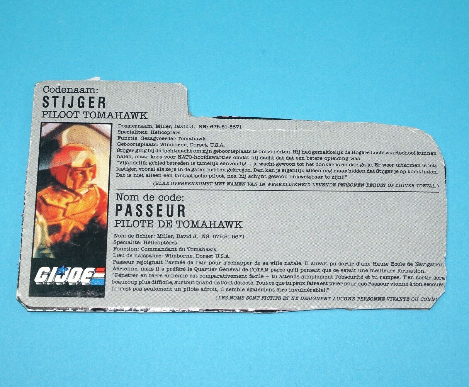 1986 GI JOE LIFT-TICKET v1 FILE CARD FILECARD NL FR BENELUX HASBRO