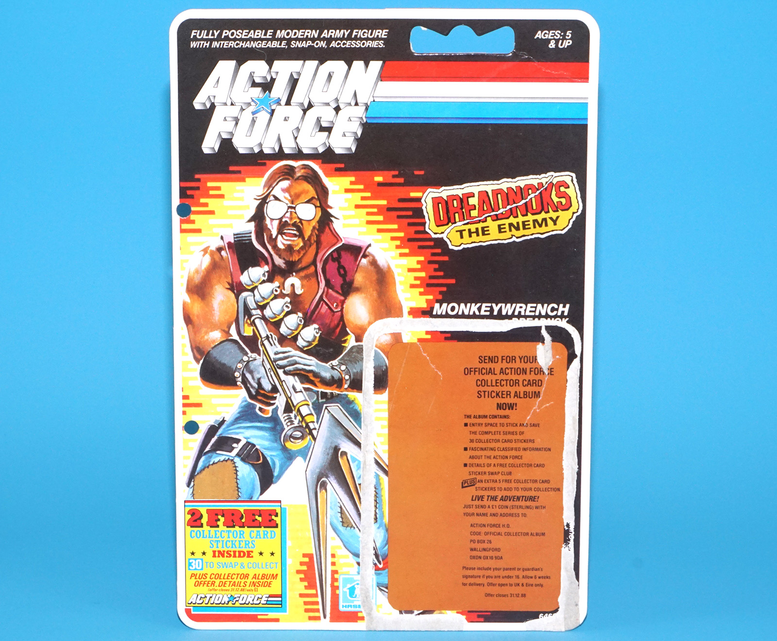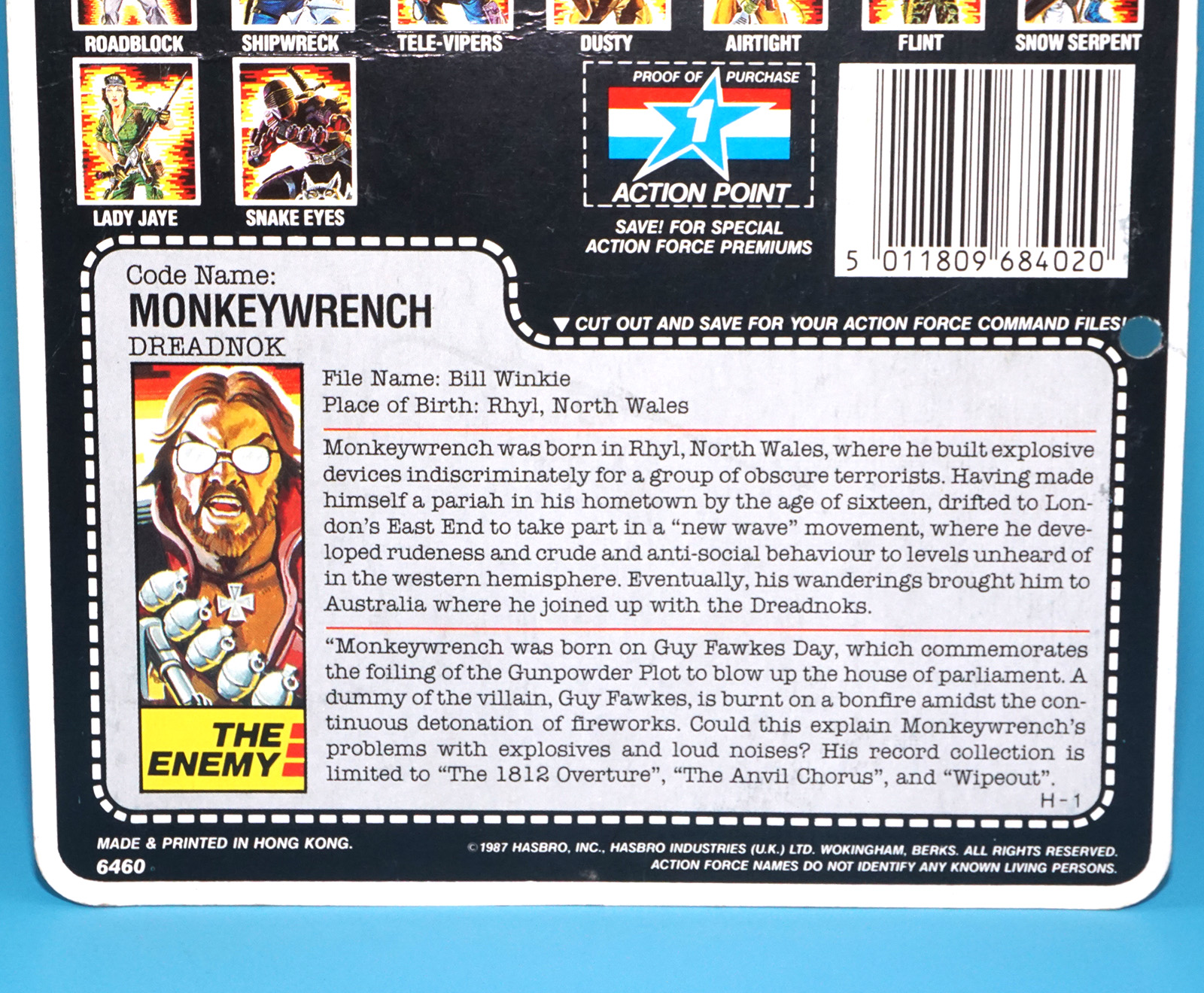 1986 GI JOE MONKEYWRENCH v1 CARDBACK UNCUT FILE CARD FILECARD ACTION FORCE UK 1987 HASBRO