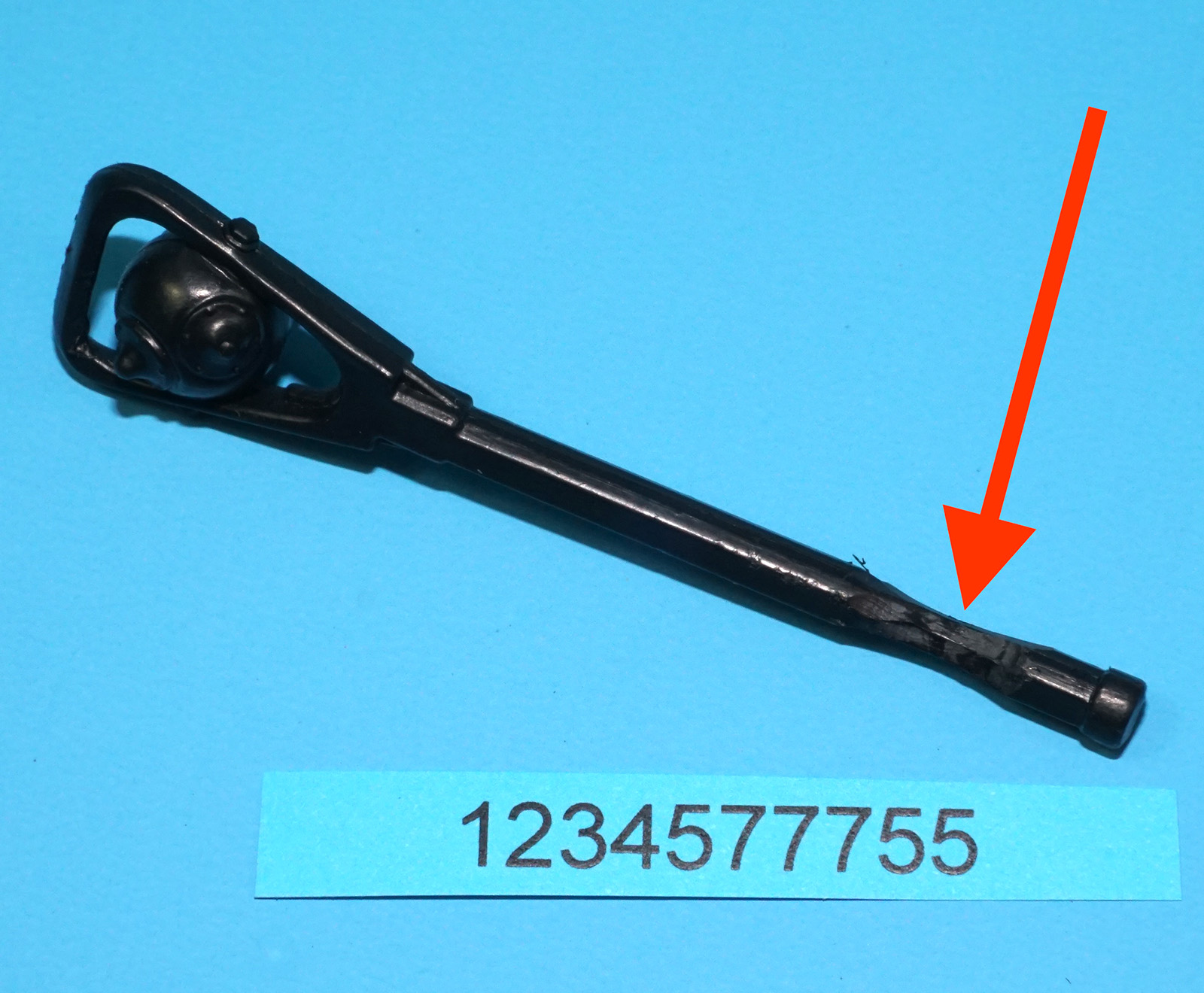 Lacrosse stick handle has been cut to fit. See close up for details.
