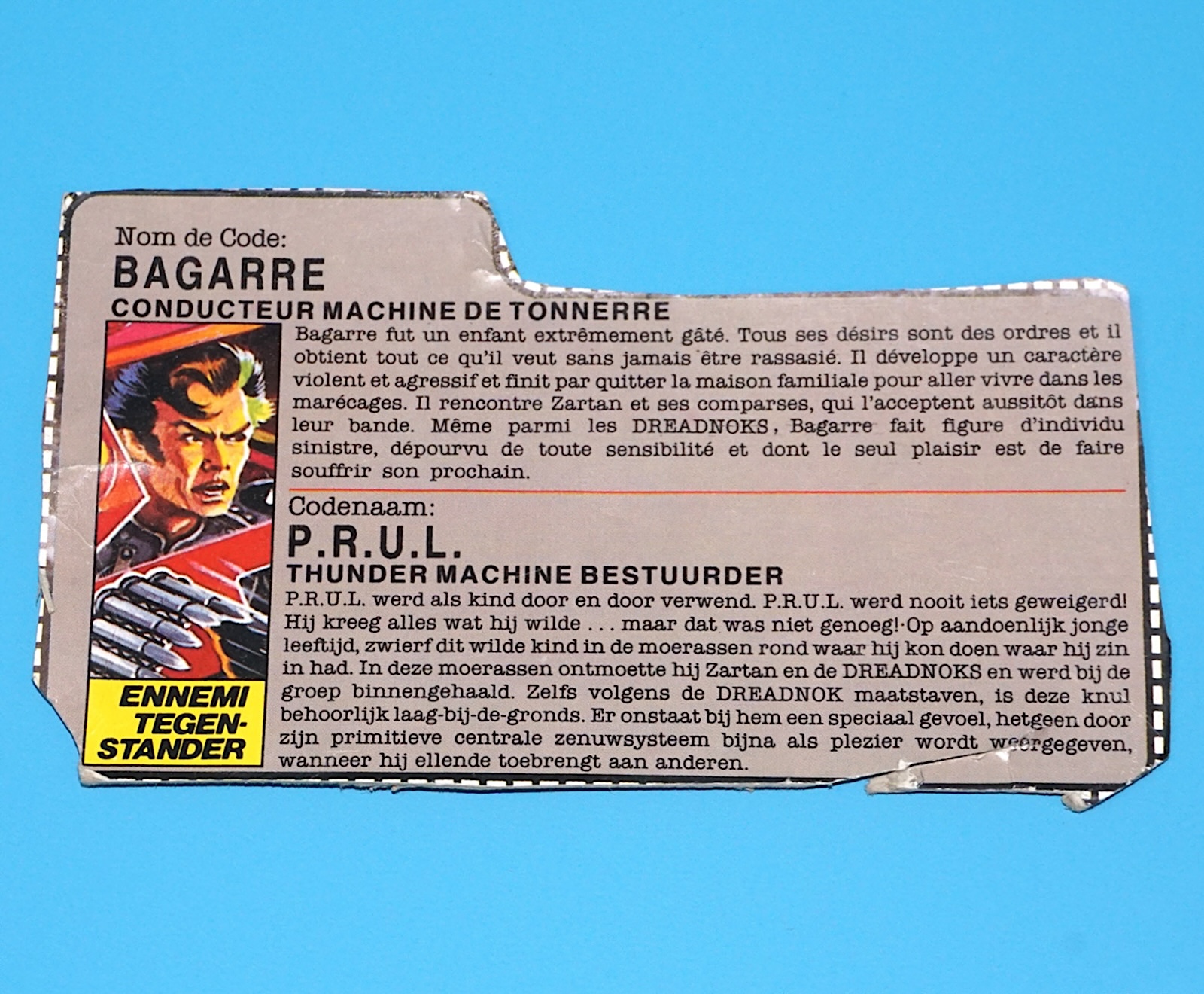 1986 GI JOE THRASHER v1 THUNDER MACHINE DRIVER FILE CARD FILECARD NL FR BENELUX EURO HASBRO