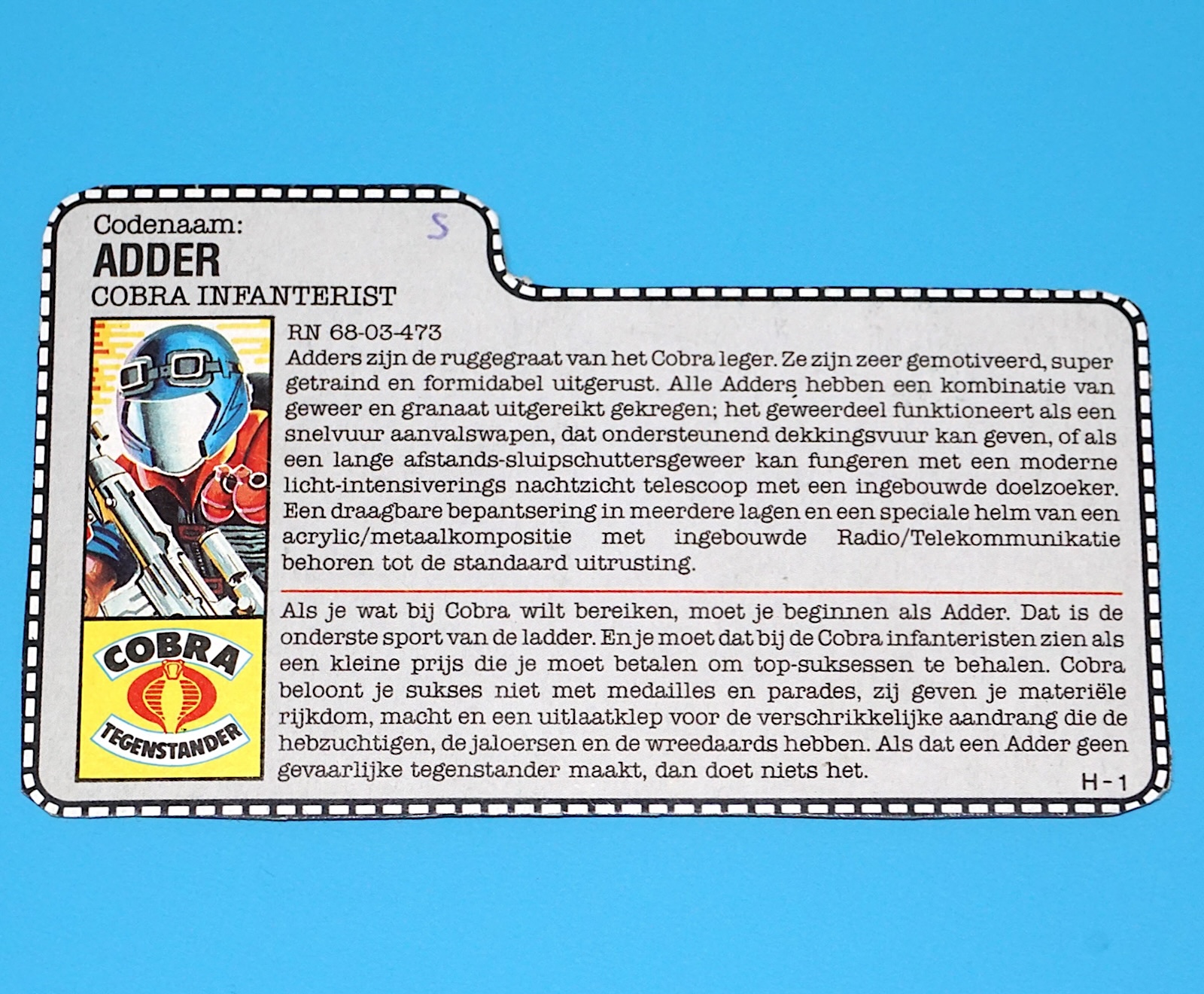 1986 GI JOE VIPER v1 FILE CARD FILECARD NL DUTCH HASBRO
