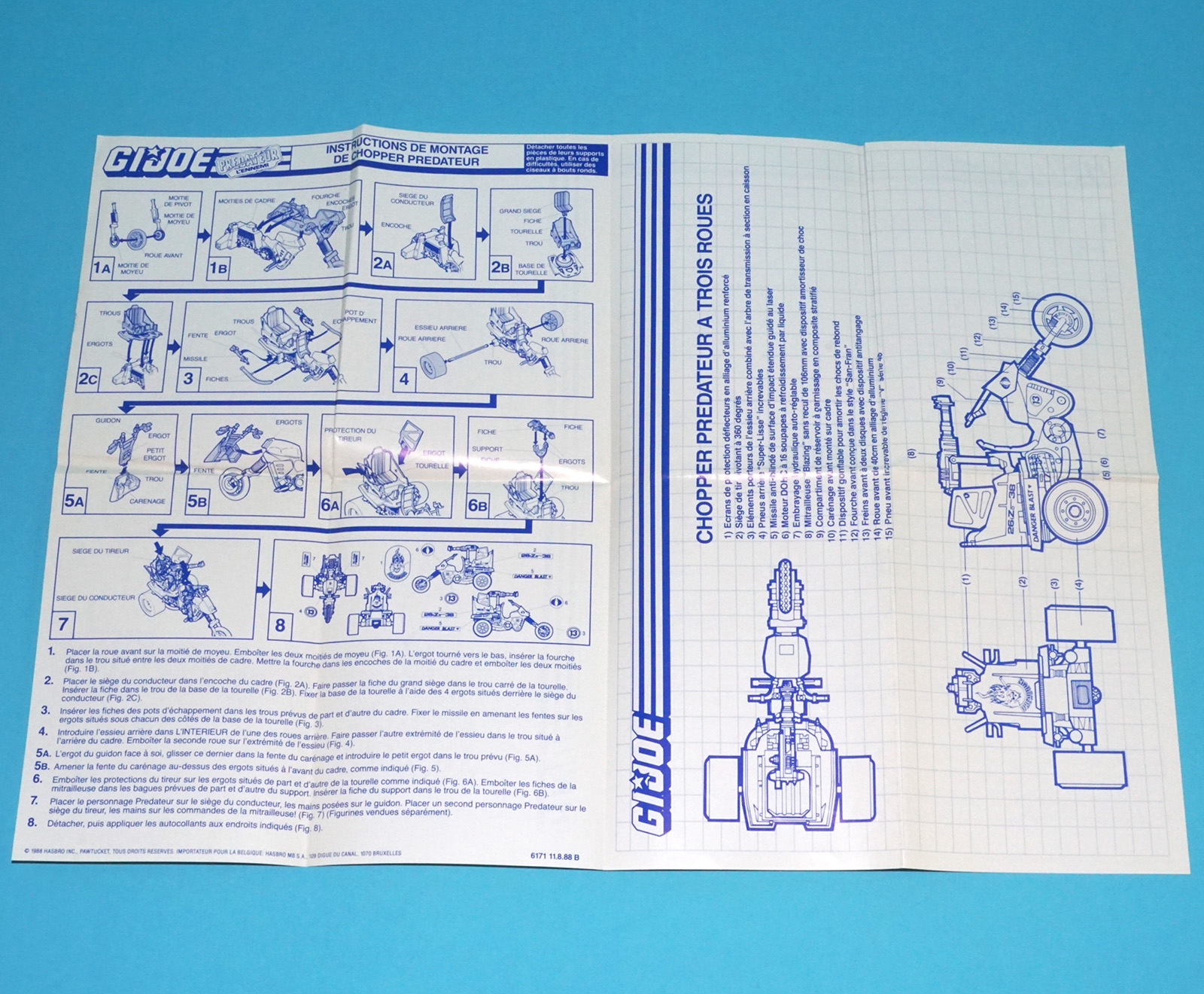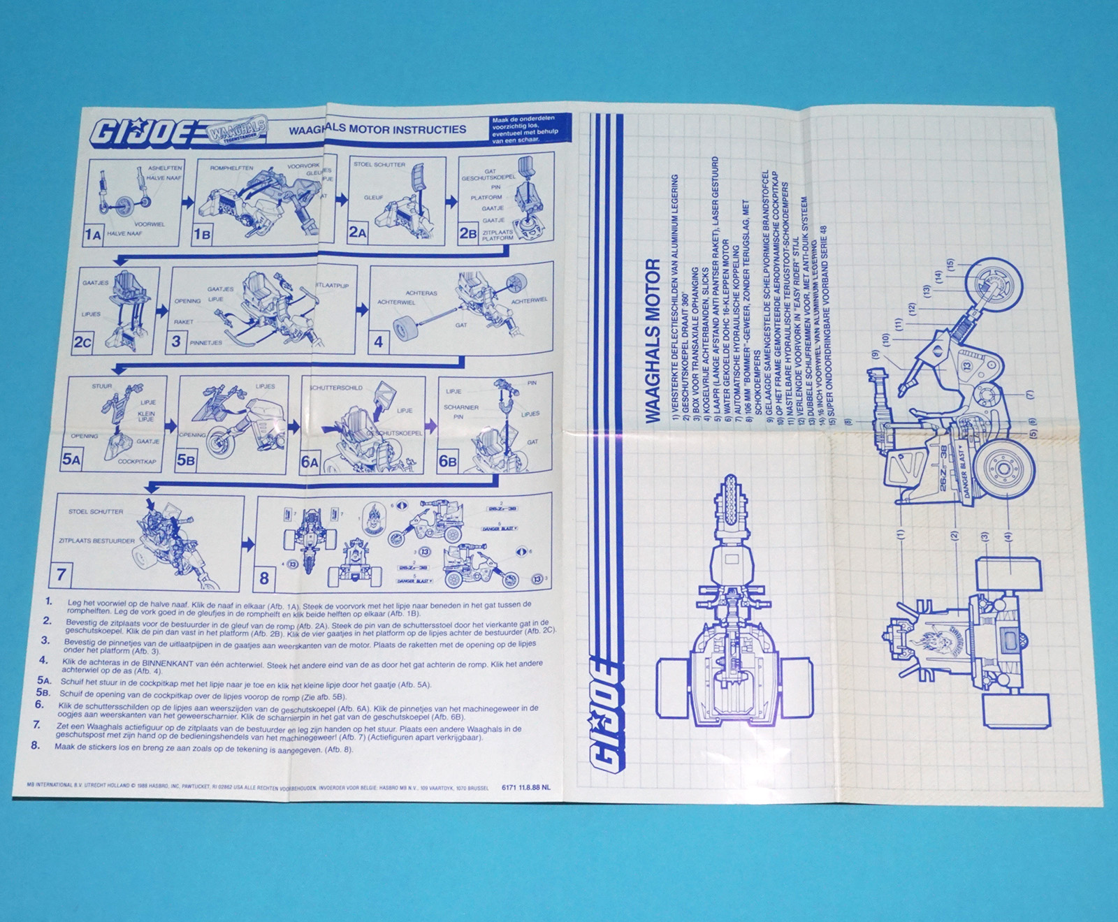 1987 GI JOE DREADNOK CYCLE SPARE BLUEPRINT INSTRUCTIONS NL FR BENELUX HASBRO