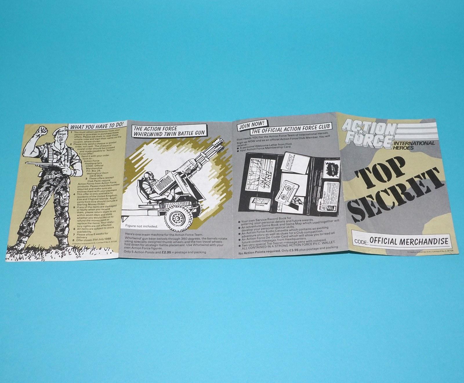 1987 GI JOE LEAFLET BROCHURE TOP SECRET ORDER FORM ACTION FORCE UK HASBRO