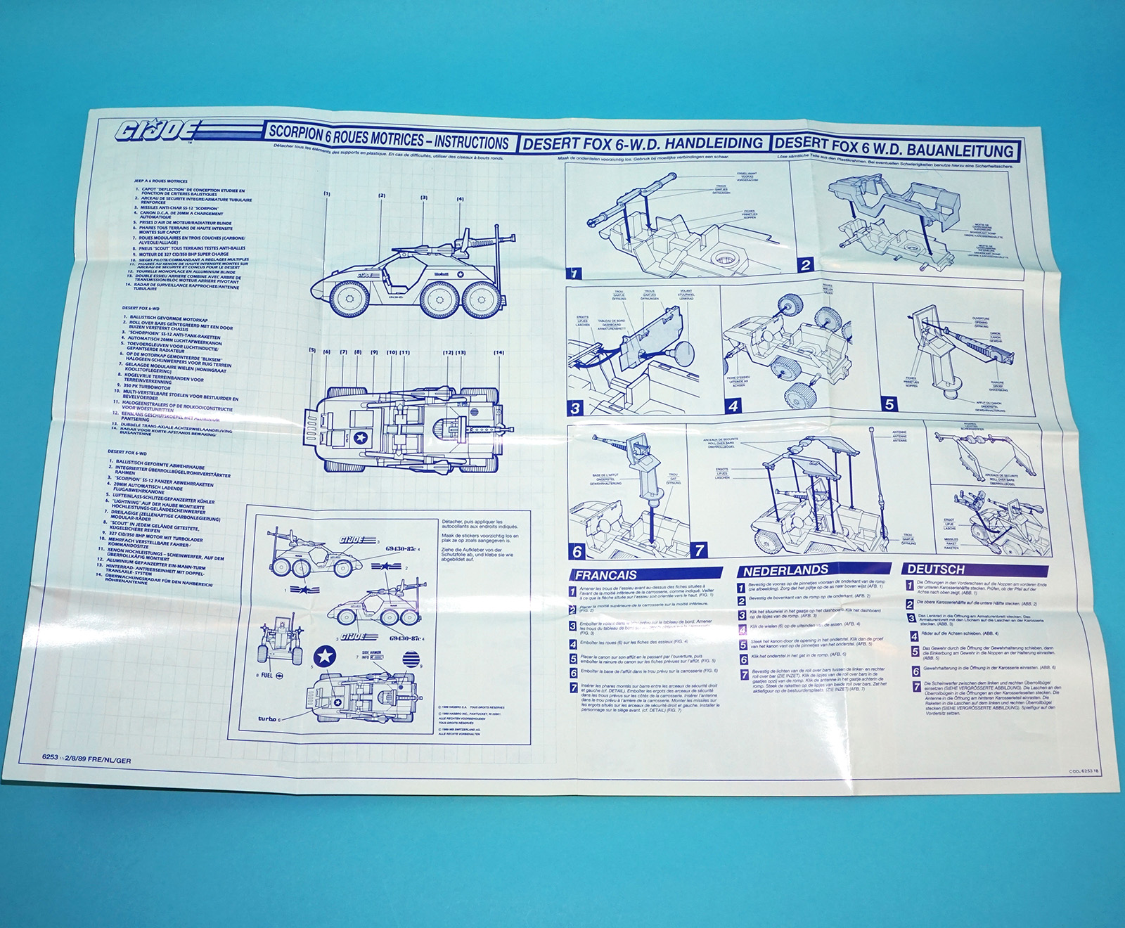 1988 GI JOE DESERT FOX SPARE BLUEPRINT INSTRUCTIONS EURO TIGER FORCE BENELUX HASBRO