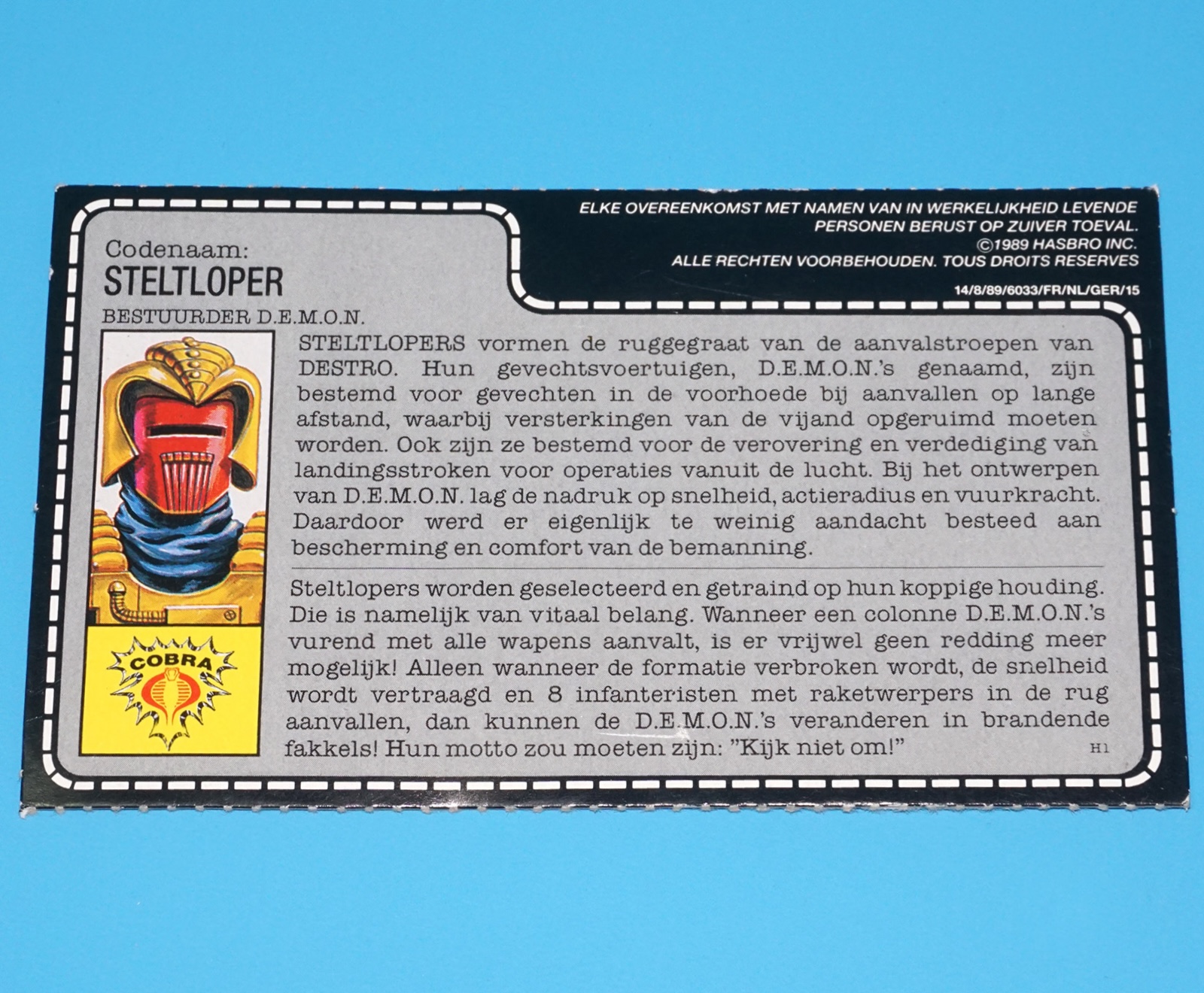 1988 GI JOE FERRET v1 D.E.M.O.N. DRIVER UNCUT FILE CARD NL DUTCH HASBRO