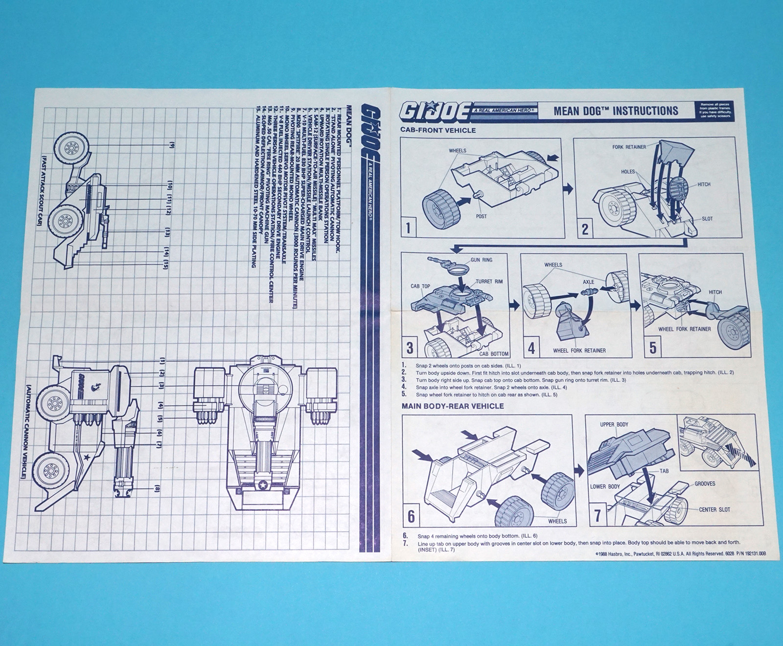 1988 GI JOE MEAN DOG SPARE BLUEPRINT INSTRUCTIONS US USA HASBRO