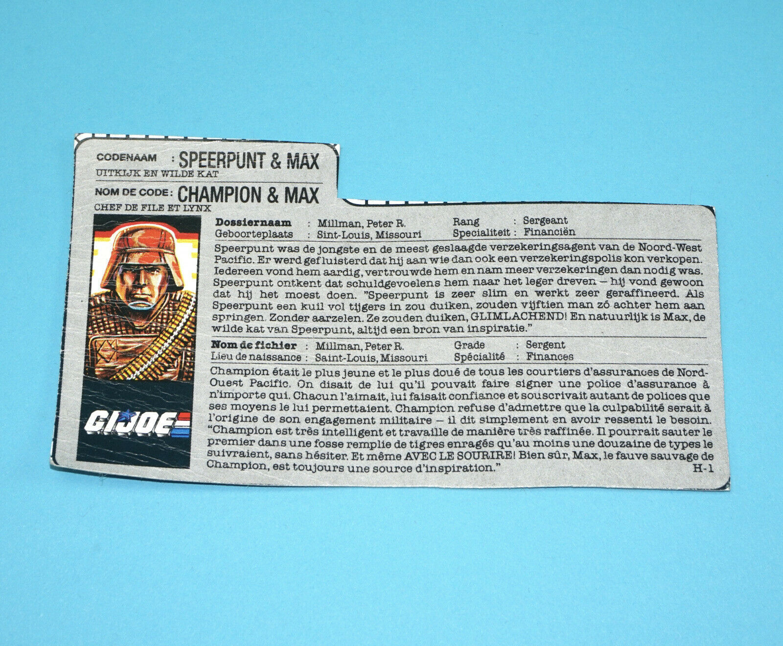 1988 GI JOE SPEARHEAD & MAX v1 FILE CARD FILECARD NL FR BENELUX HASBRO