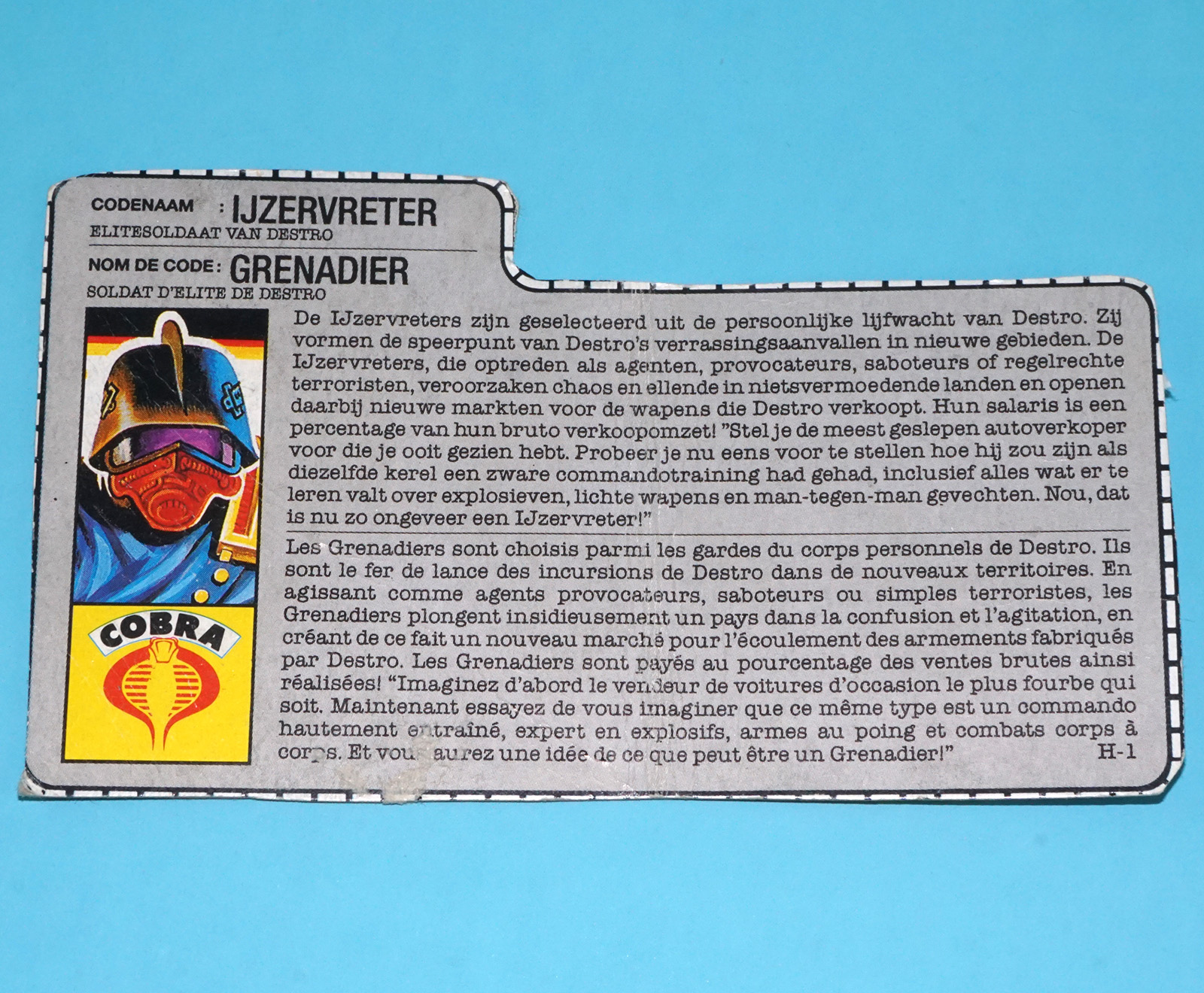 1988 GI JOE TIGER FORCE DUKE v2 FILE CARD FILE CARD NL FR BENELUX HASBRO
