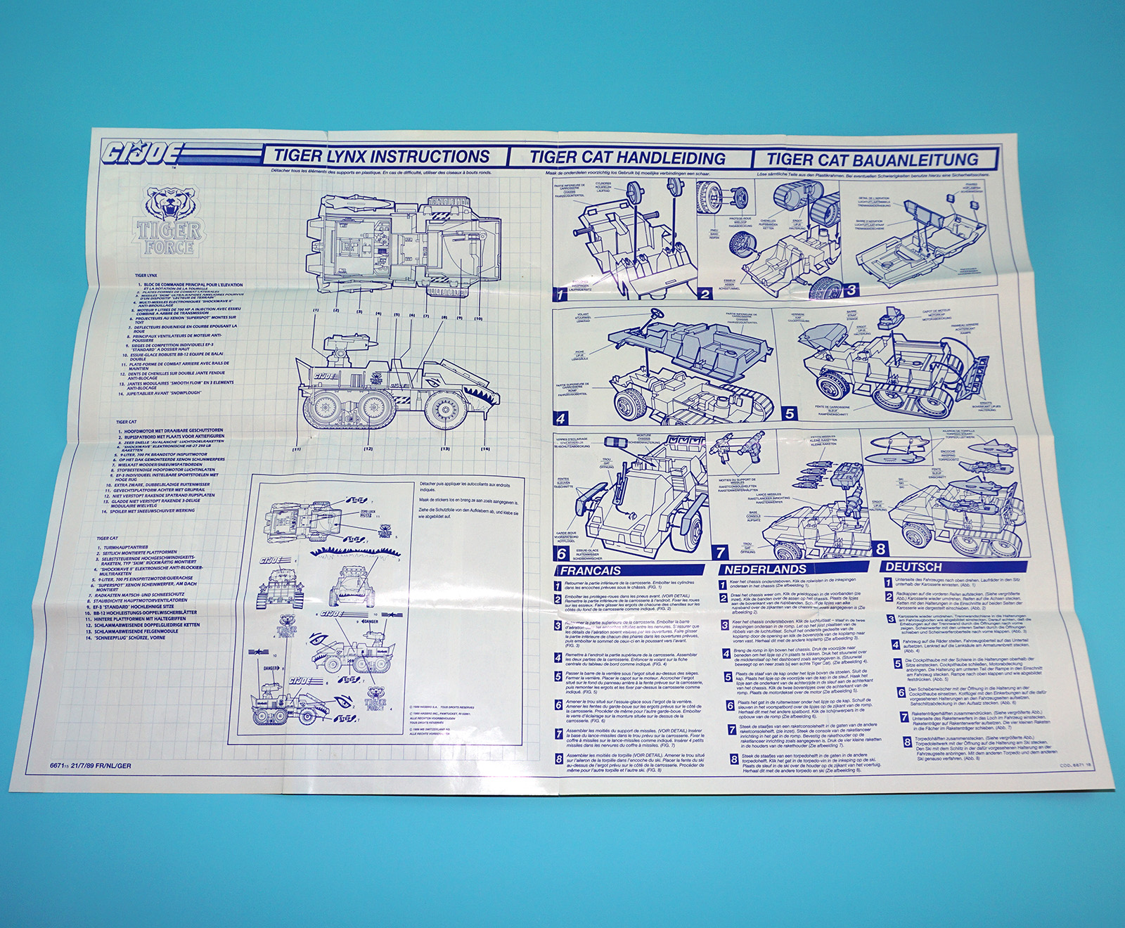 1988 GI JOE TIGER FORCE TIGER CAT SPARE BLUEPRINT INSTRUCTIONS NL FR DE EURO HASBRO