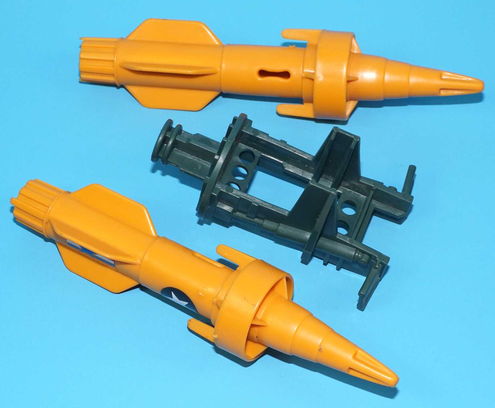 1988 GI JOE WARTHOG A.I.F.V. ORIGINAL SPARE PART MISSILE ROCKET SET (L+R) & BRACKET HASBRO