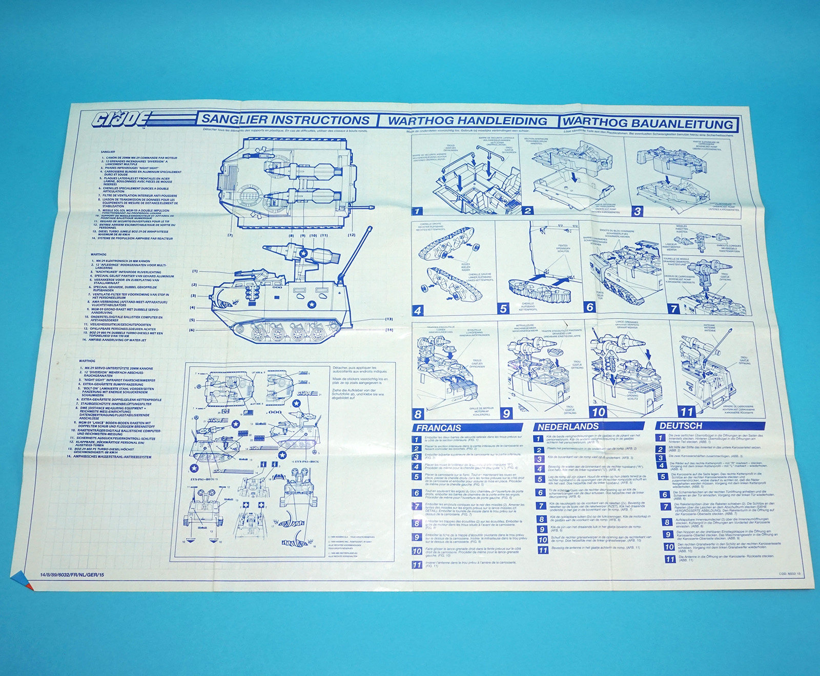 1988 GI JOE WARTHOG A.I.F.V. SPARE BLUEPRINT INSTRUCTIONS EURO TIGER FORCE BENELUX HASBRO