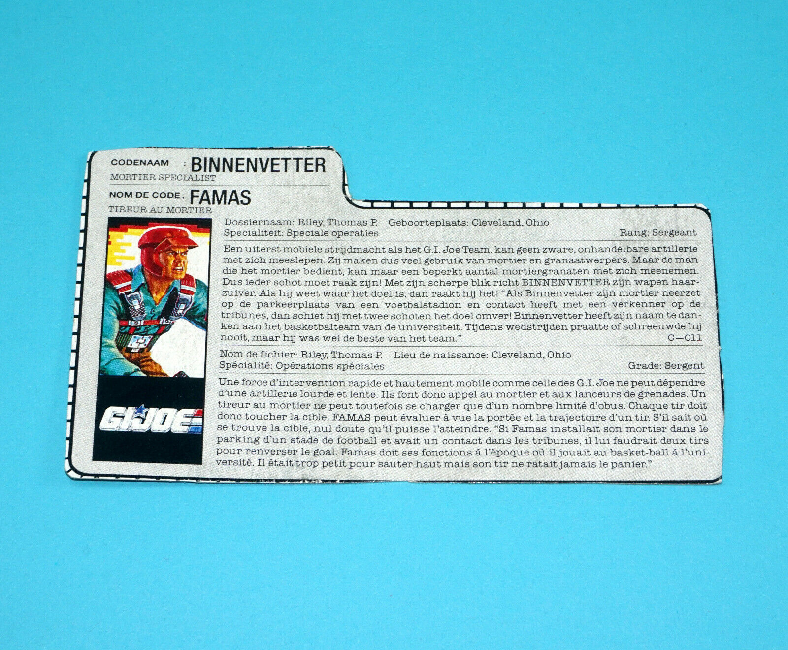 1989 GI JOE DOWNTOWN v1 FILE CARD FILECARD NL FR BENELUX HASBRO