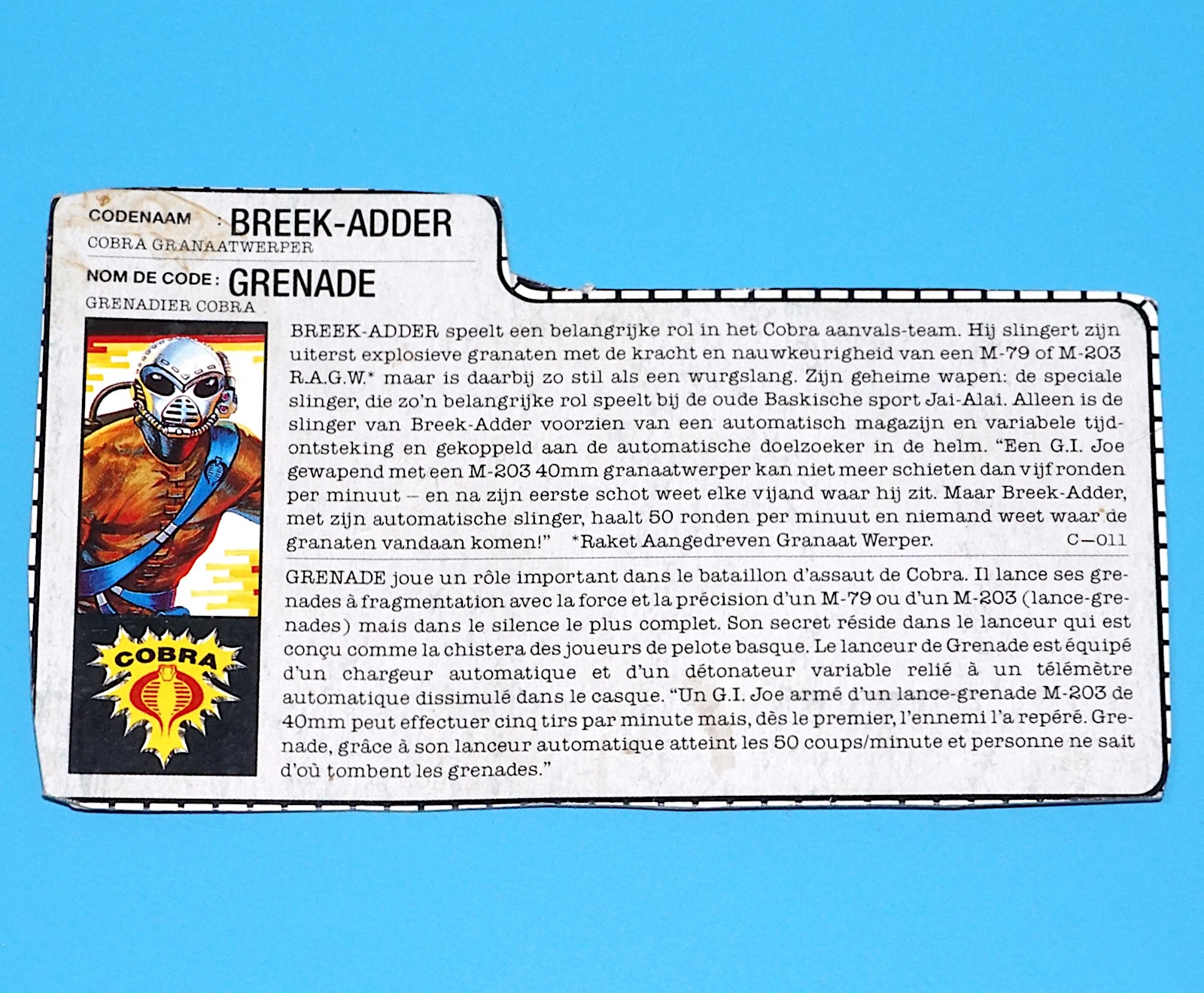 1989 GI JOE DOWNTOWN v1 FILE CARD FILECARD NL FR BENELUX HASBRO
