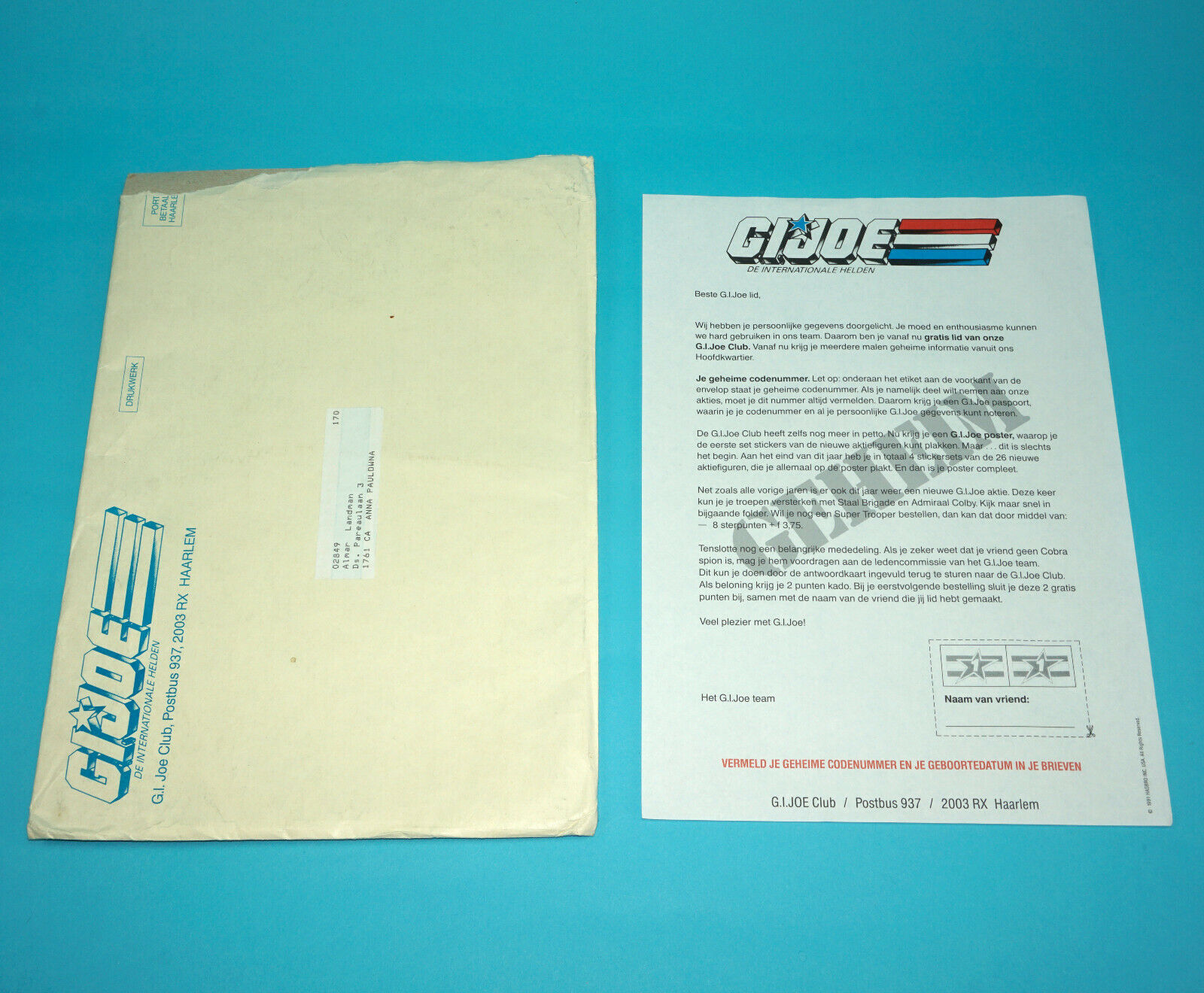 1989 GI JOE MAIL OFFER STICKER POSTER BENELUX NL BE PROMO UNUSED HASBRO