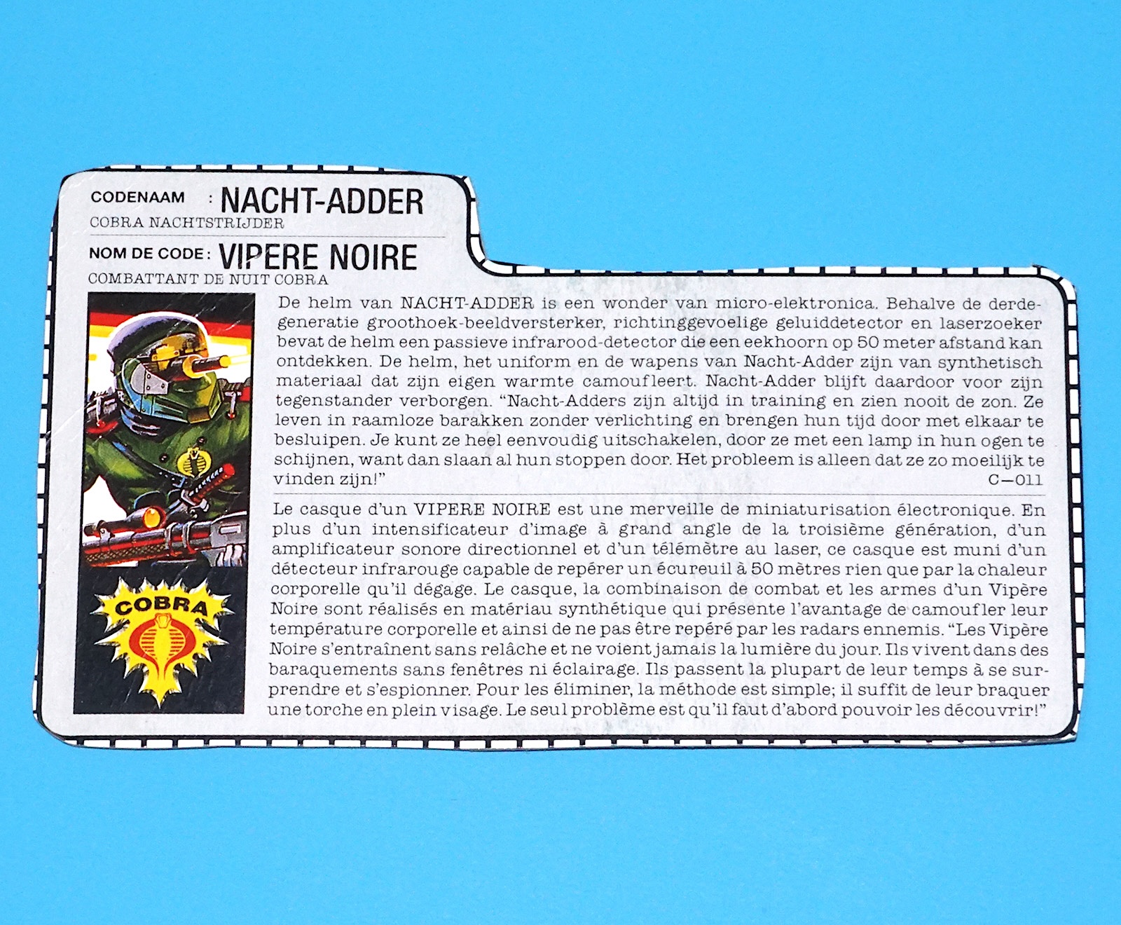 1989 GI JOE NIGHT-VIPER v1 FILE CARD FILECARD NL FR BENELUX HASBRO
