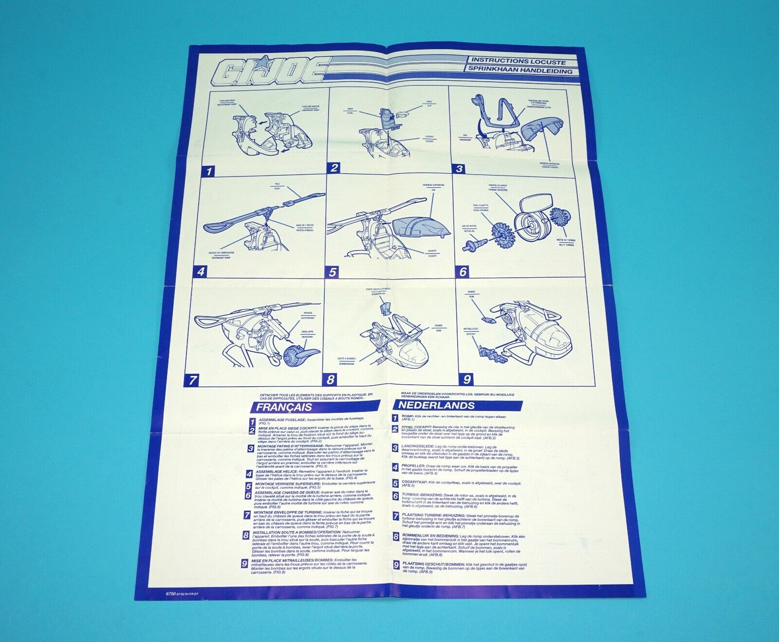 1990 GI JOE LOCUST SPARE BLUEPRINT INSTRUCTIONS EURO NL FR BENELUX HASBRO