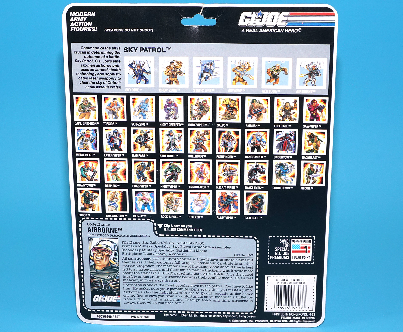 1990 GI JOE SKY PATROL AIRBORNE v2 MOC MOSC US CARD HASBRO