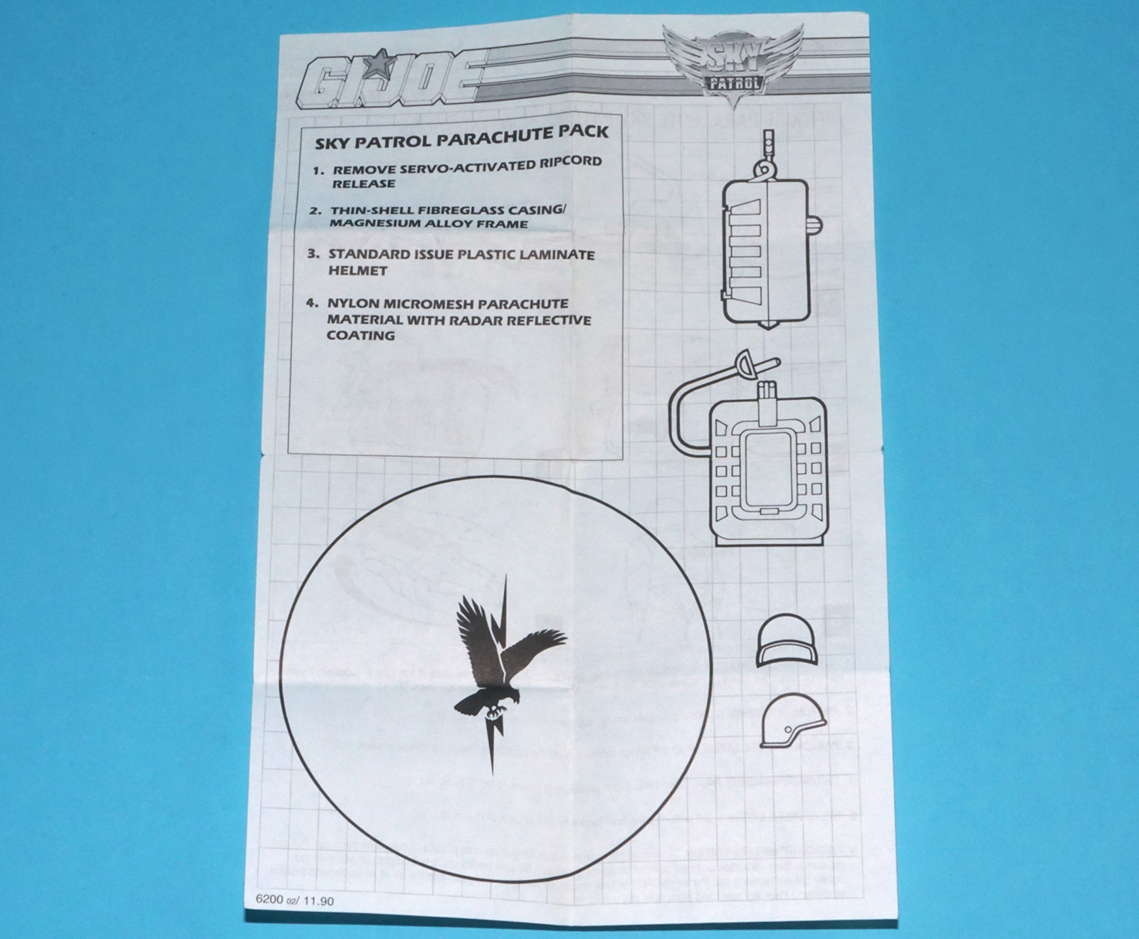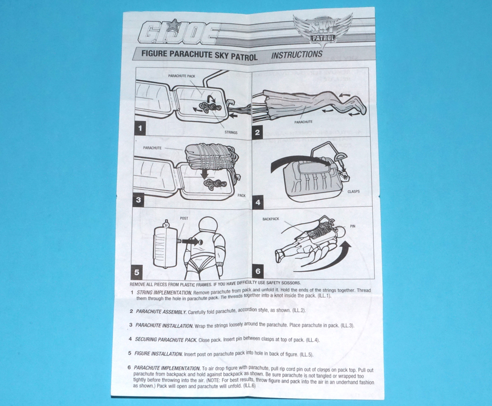 1990 GI JOE SKY PATROL PARACHUTE SPARE INSTRUCTIONS EN UK US USA HASBRO