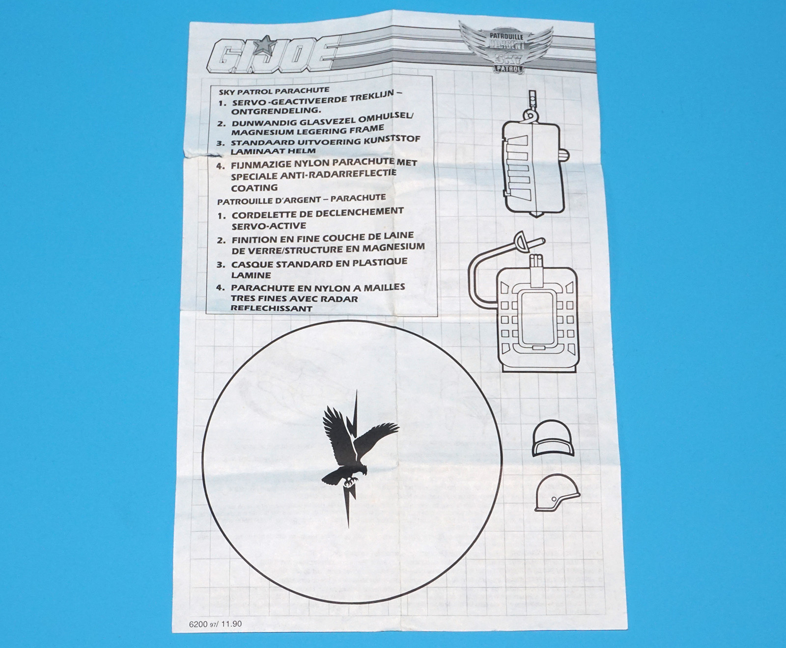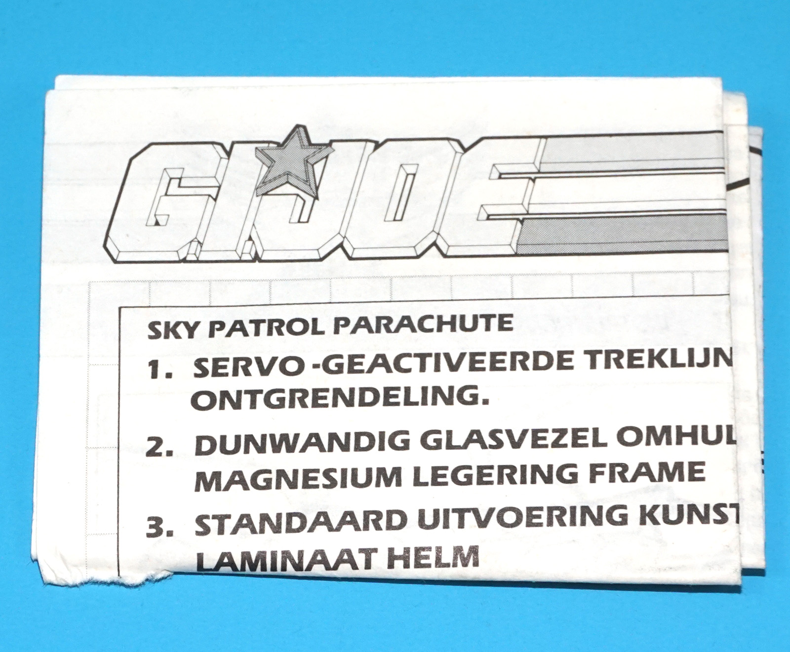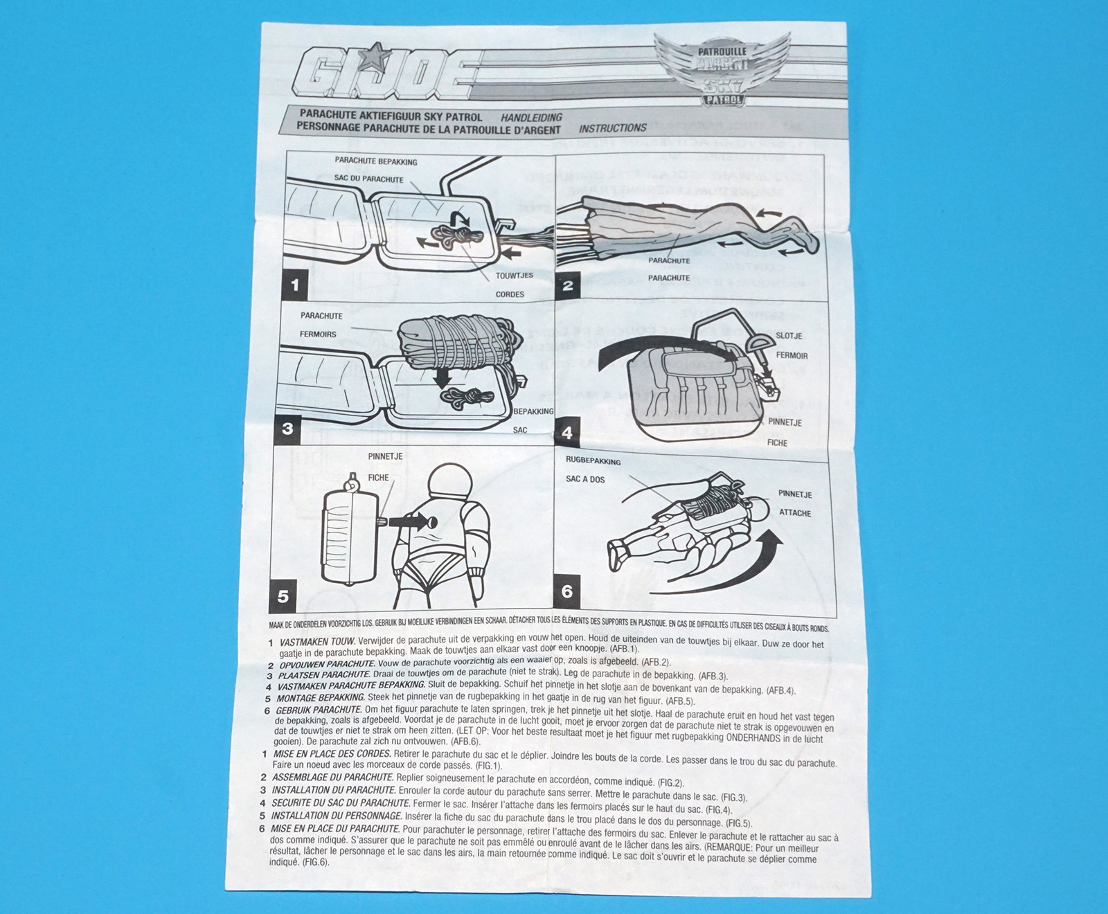1990 GI JOE SKY PATROL PARACHUTE SPARE INSTRUCTIONS NL FR DUTCH FRENCH EURO BENELUX HASBRO