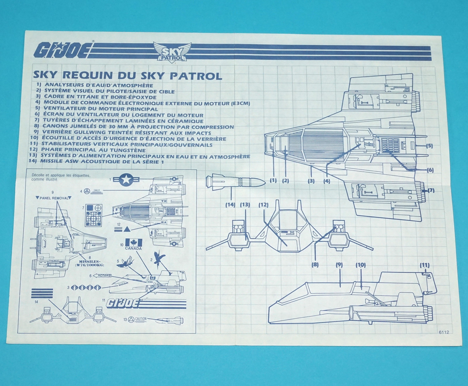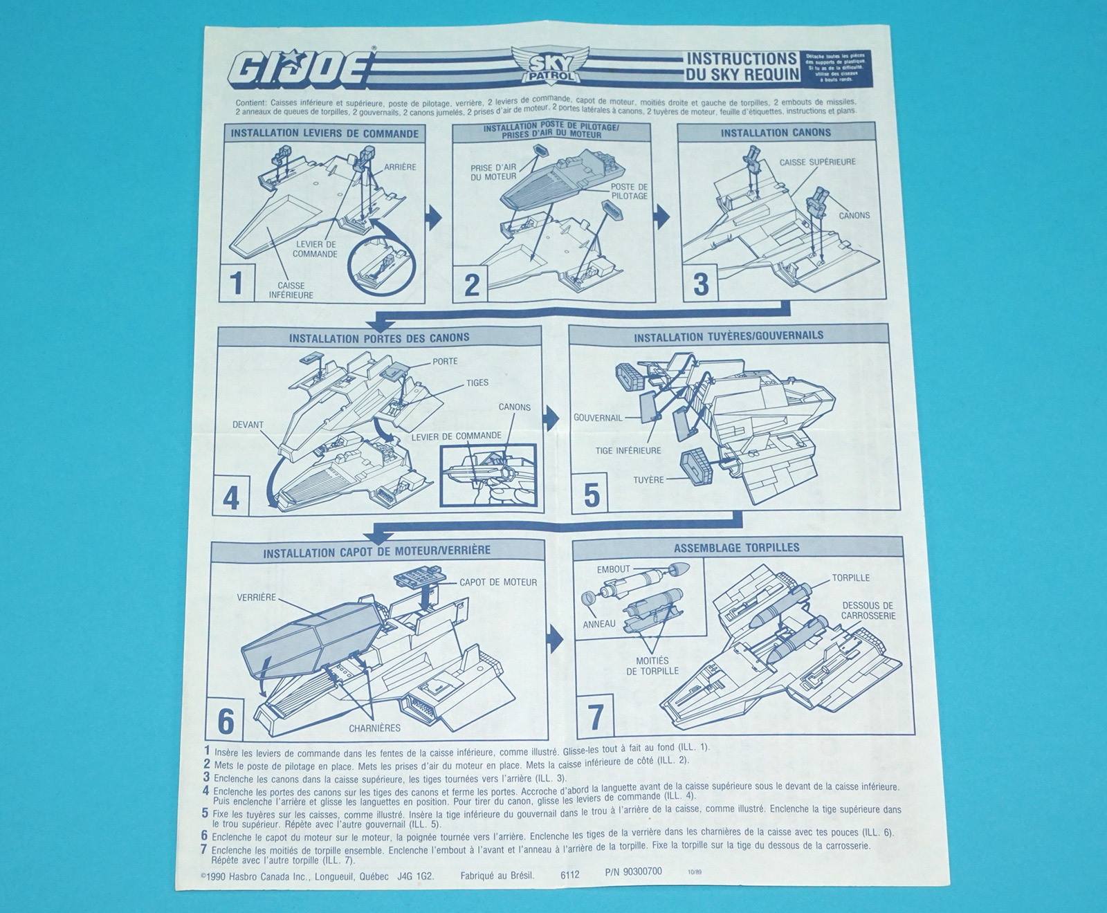 1990 GI JOE SKY PATROL SKY SHARC SPARE BLUEPRINT INSTRUCTIONS FR CANADA HASBRO