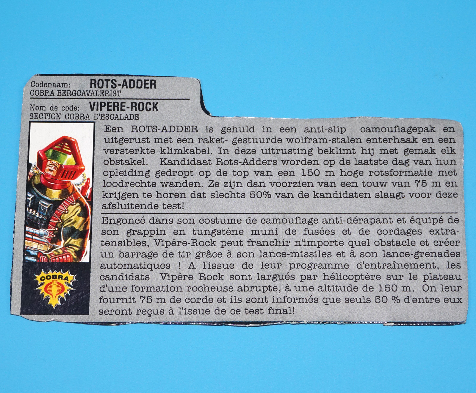 1990 GI JOE SUB-ZERO v1 FILE CARD FILECARD NL FR BENELUX HASBRO