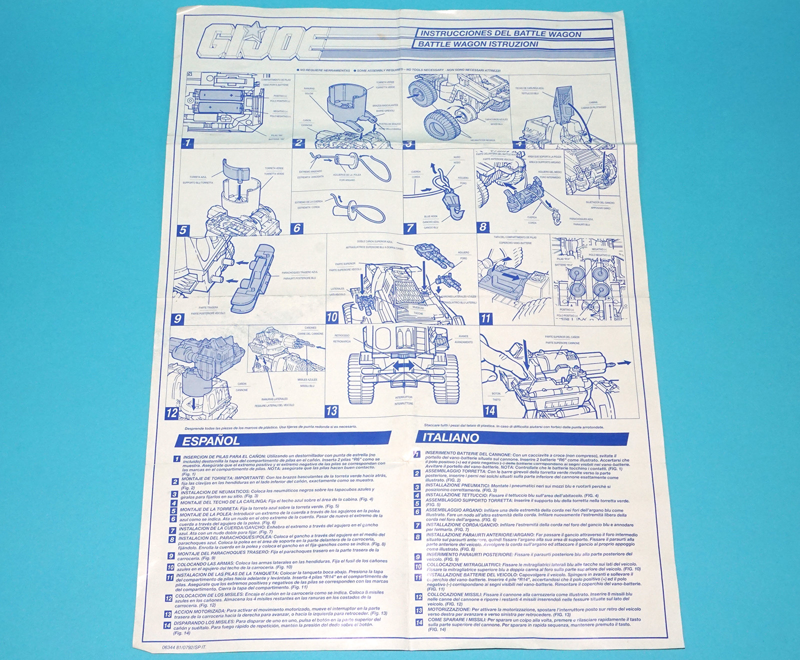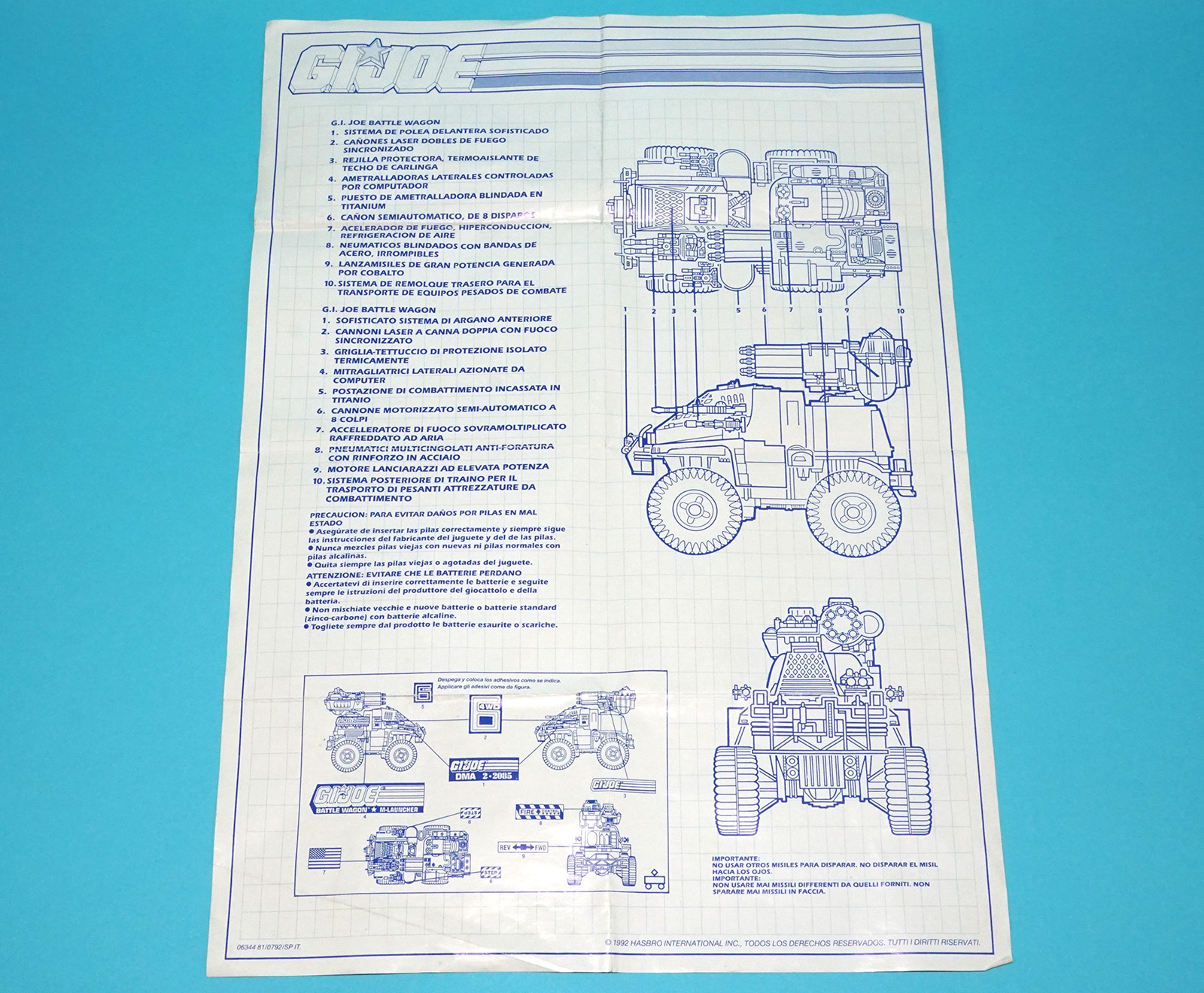 1991 GI JOE BATTLE WAGON SPARE BLUEPRINT INSTRUCTIONS ES IT EURO HASBRO