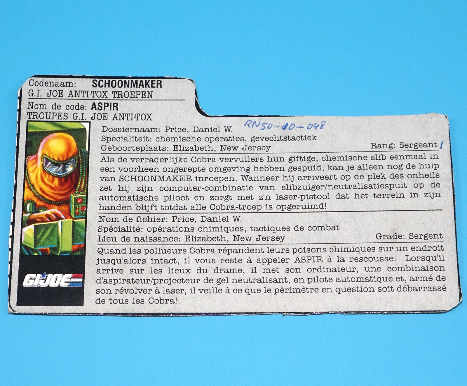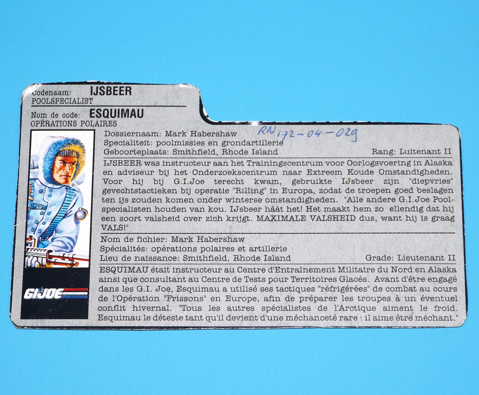1991 GI JOE ECO WARRIORS CLEAN-SWEEP v1 FILE CARD FILECARD NL FR BENELUX HASBRO