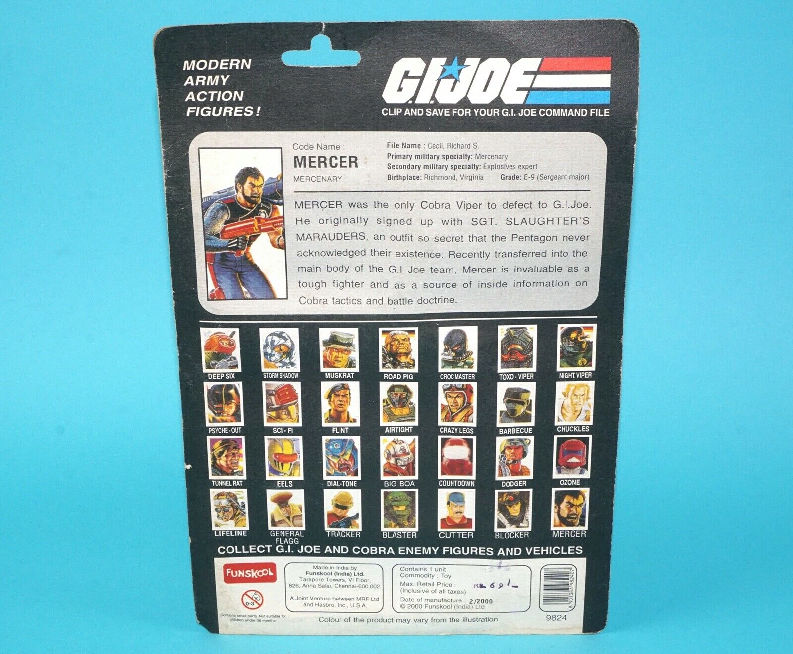 1991 GI JOE MERCER v1 MOC MOSC 2000 FUNSKOOL INDIA