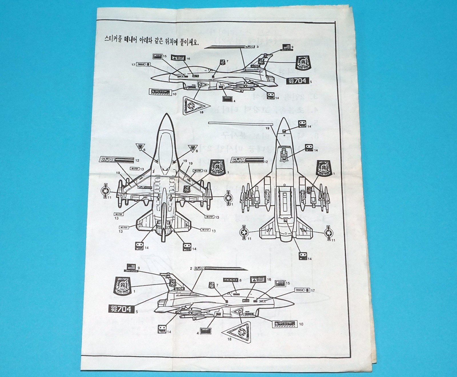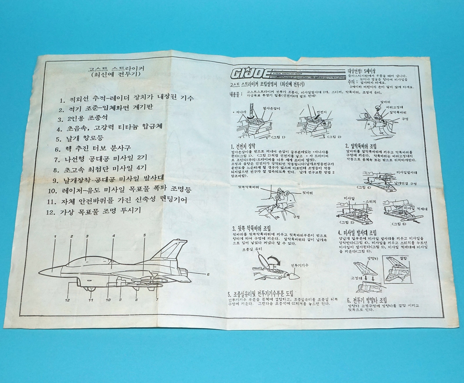 1993 GI JOE GHOSTSTRIKER X-16 JET PLANE ORIGINAL BLUEPRINT INSTRUCTIONS KOREAN INSERT HASBRO