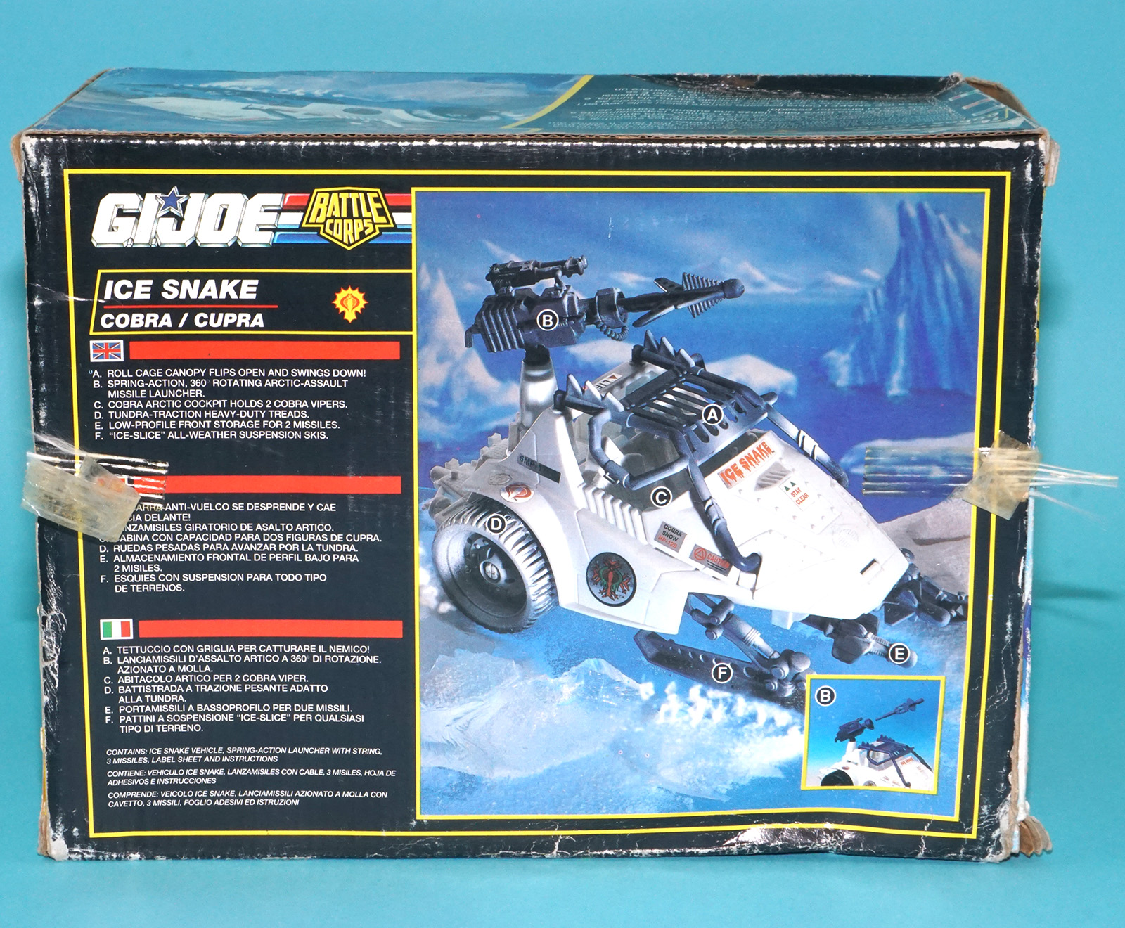 1993 GI JOE ICE SNAKE 100% COMPLETE BOXED EURO NORDIC IMPORT STICKER EURO HASBRO
