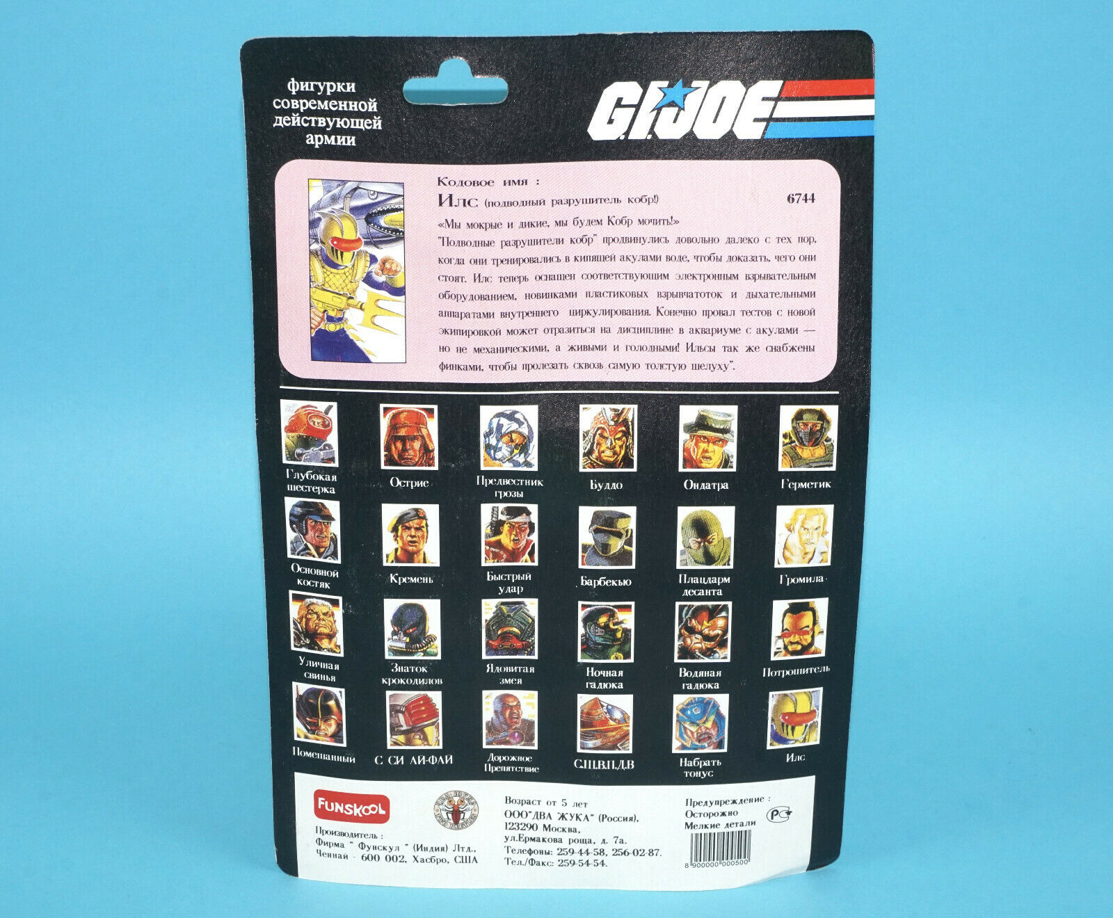 1994 GI JOE EEL EELS v2 MOC MOSC FUNSKOOL INDIA RUSSIAN CARD