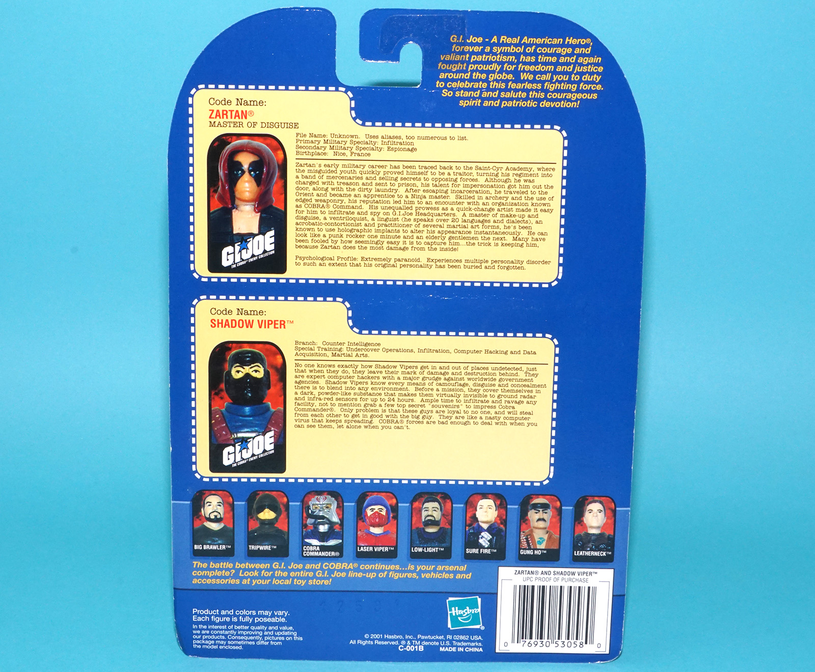2001 GI JOE ZARTAN v3 & SHADOW VIPER v1 MOC MOSC US CARD HASBRO