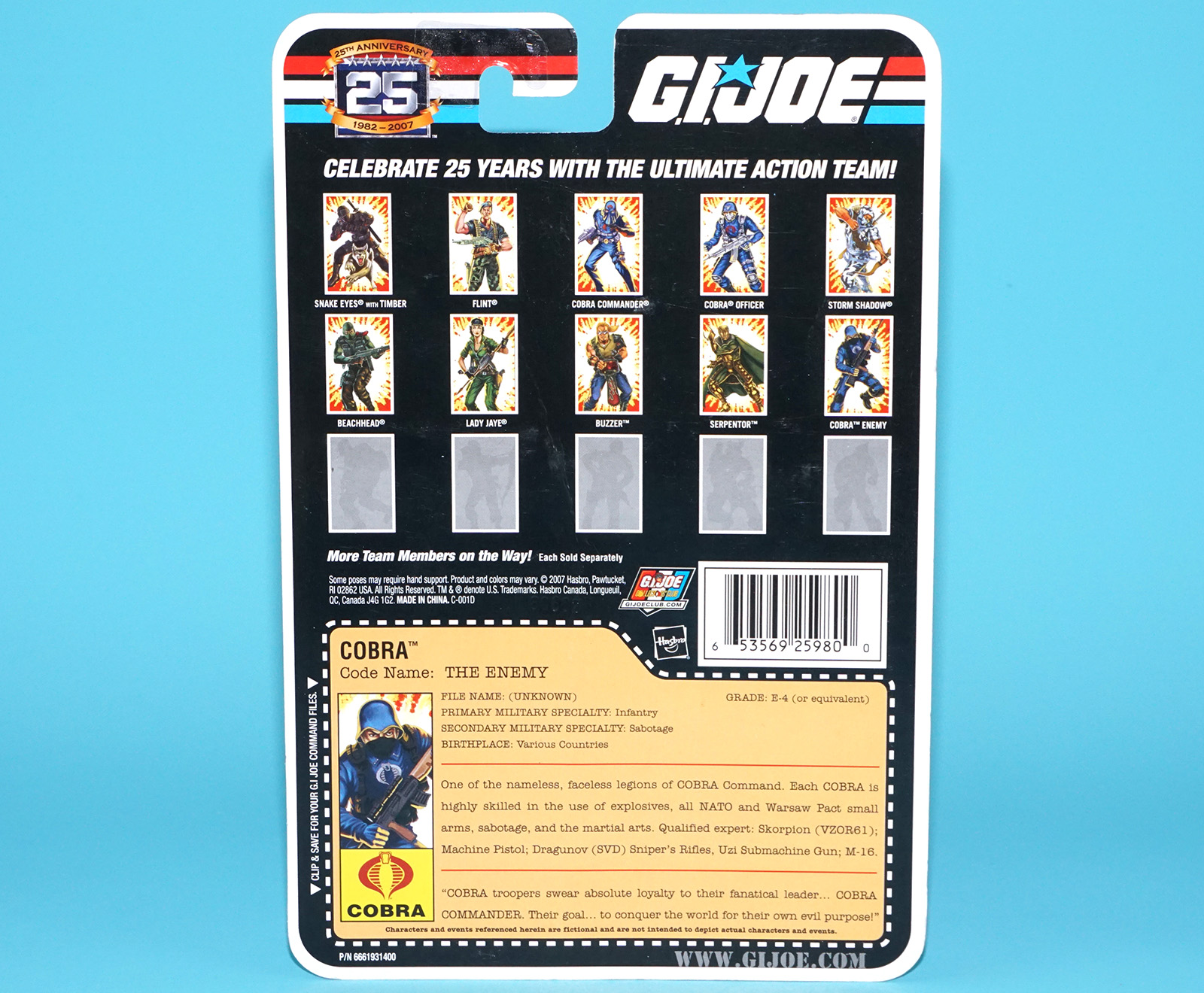 2007 GI JOE COBRA TROOPER v3 UNCUT FILE CARD CARDBACK 25TH HASBRO