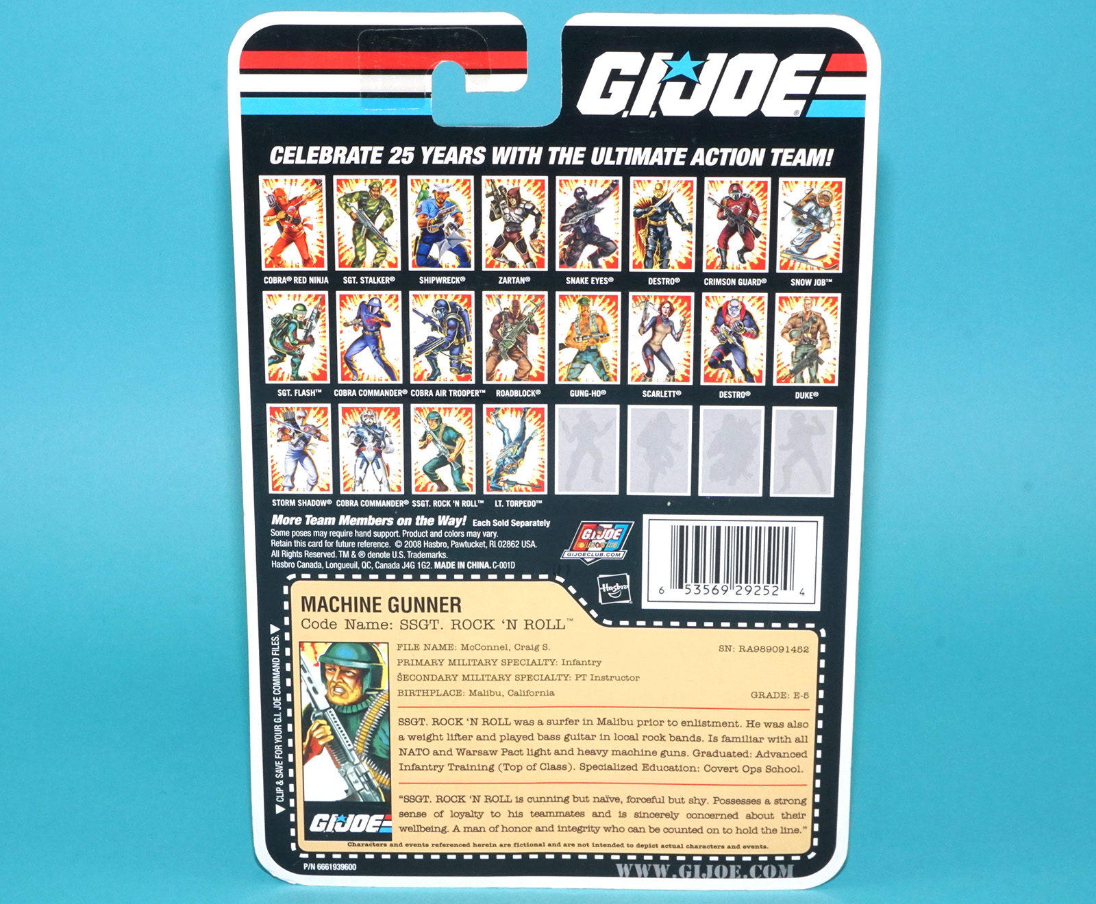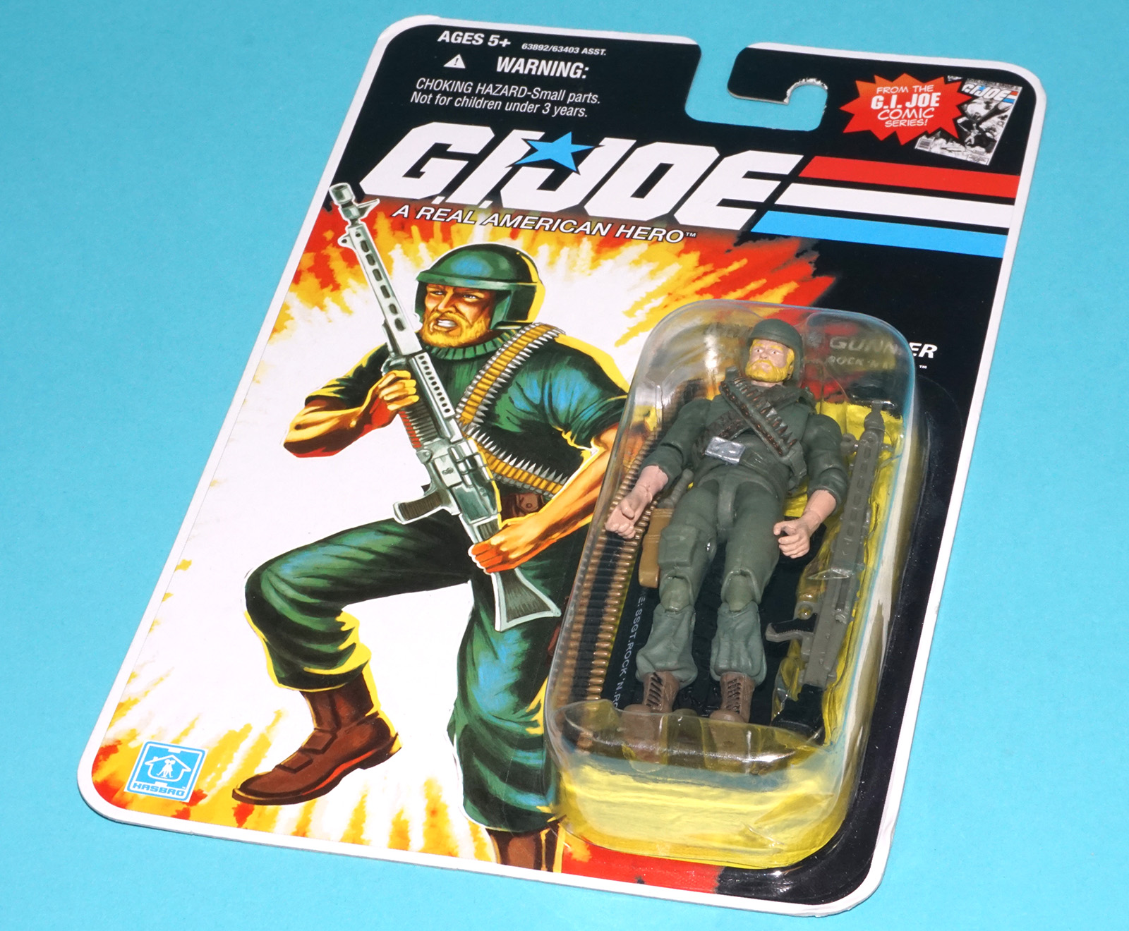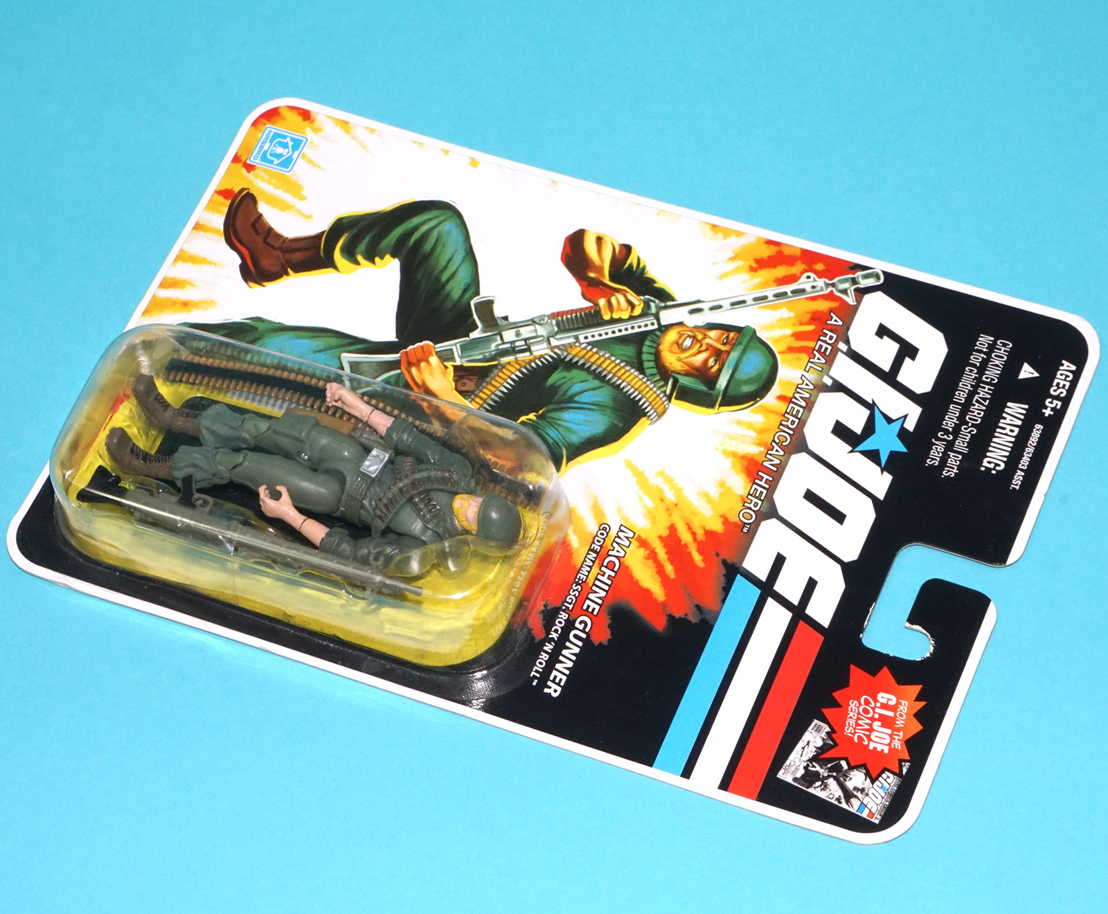 2008 GI JOE 25TH MACHINE GUNNER SGT. ROCK ‘N ROLL v1 MOC MOSC COMIC SERIES HASBRO