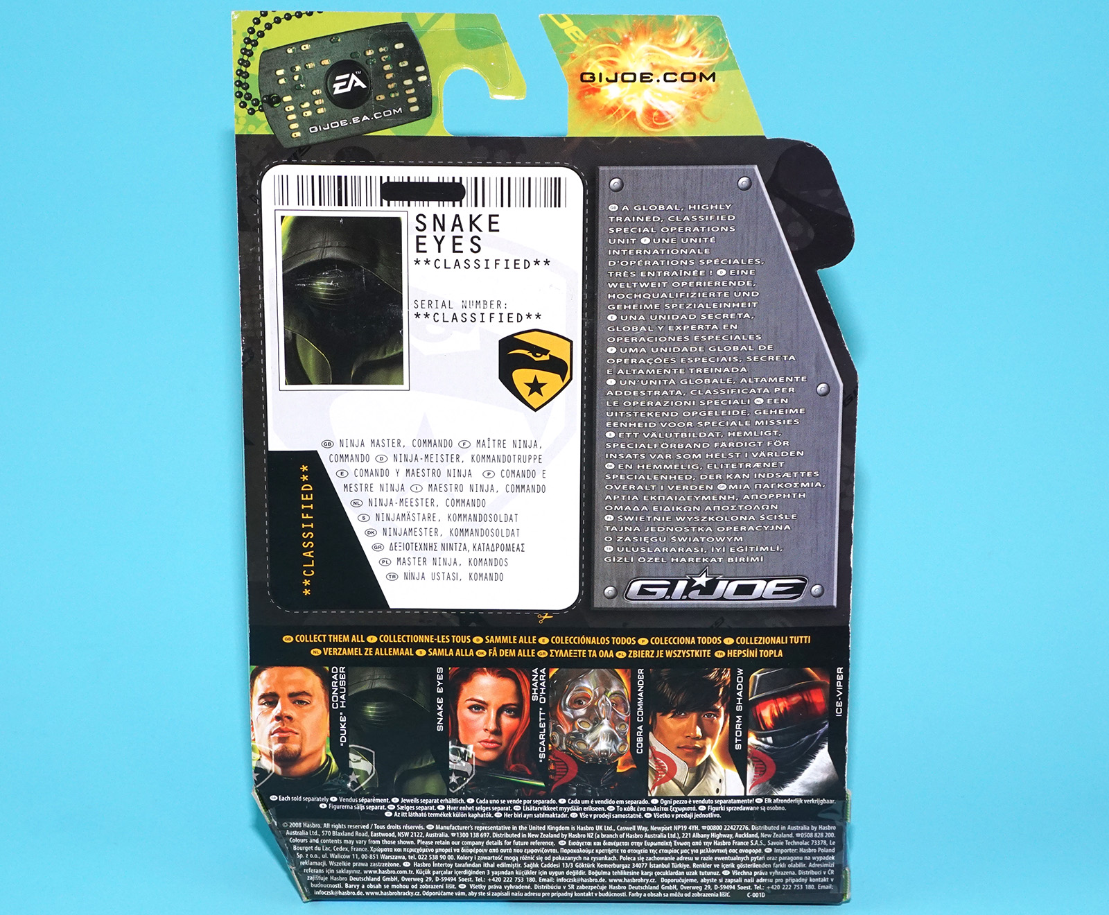 2009 GI JOE ROC SNAKE EYES v44 PARIS PURSUIT MOC MOSC EURO CARD HASBRO