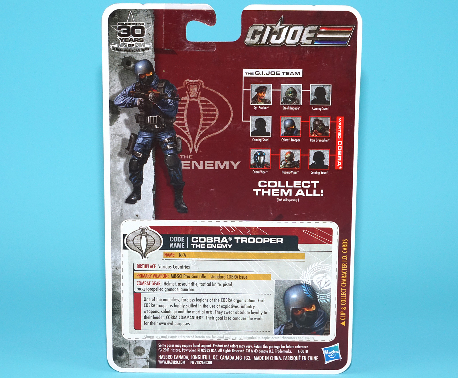 2011 GI JOE 30TH COBRA TROOPER v15 UNCUT FILE CARD CARDBACK HASBRO 25TH 50TH