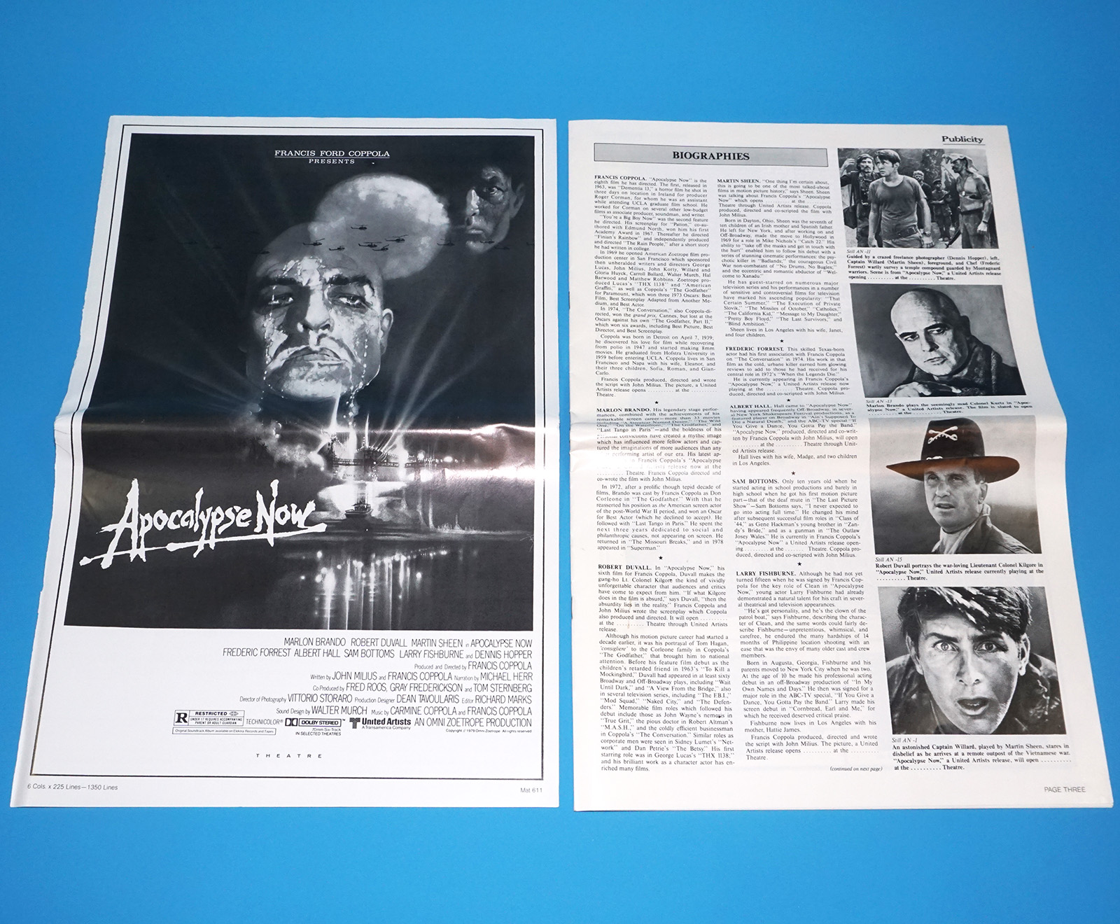APOCALYPSE NOW PRESS KIT CINEMA POSTER ORDER CATALOG MOVIE STILLS KEY SET 1979 UNITED ARTISTS READ